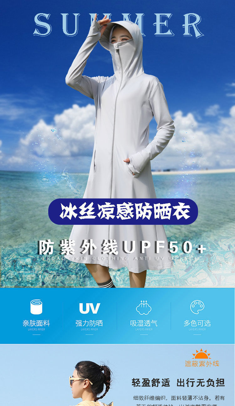 韩版长款防晒衣 冰丝薄款防紫外线防晒服