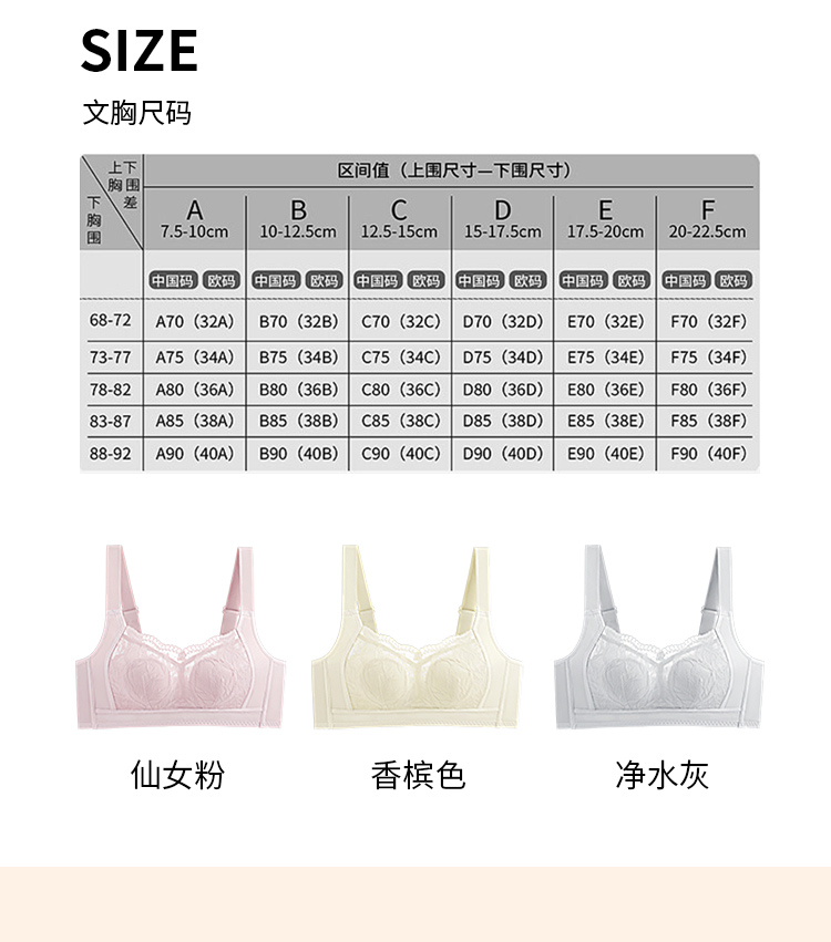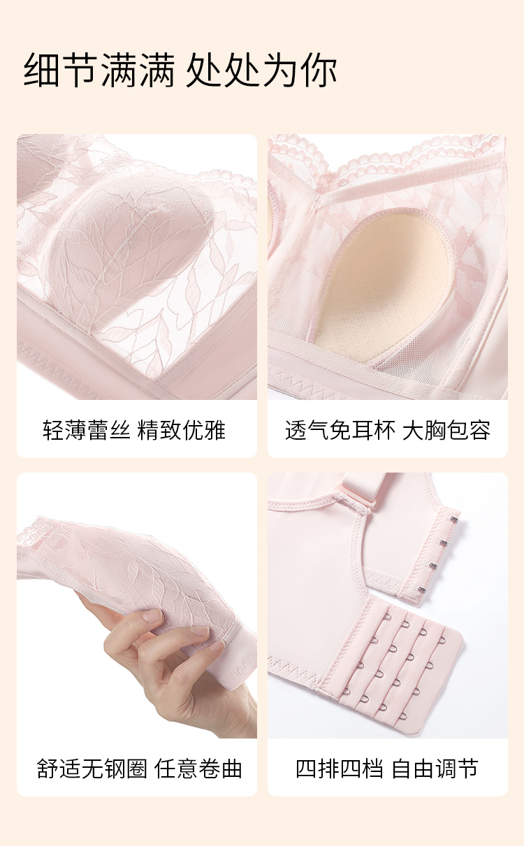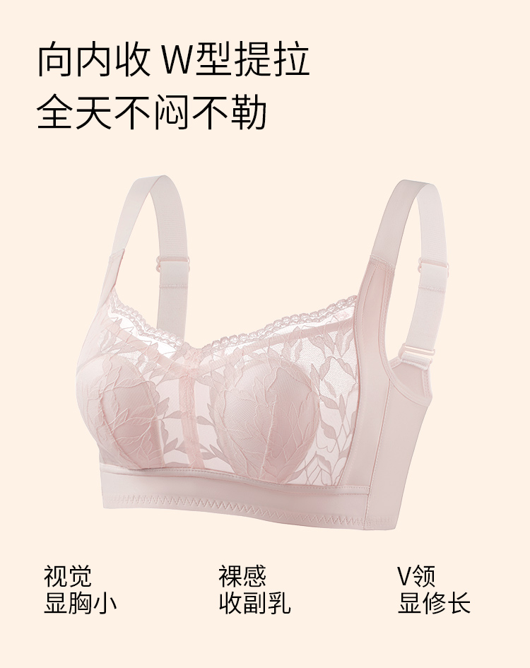 【大胸显小】润微内衣女夏季蕾丝超薄透气聚拢防下垂调整型无钢圈文胸 花融素月【大胸-蕾丝】(此款底围偏小,确认合适以后再水洗哟!)