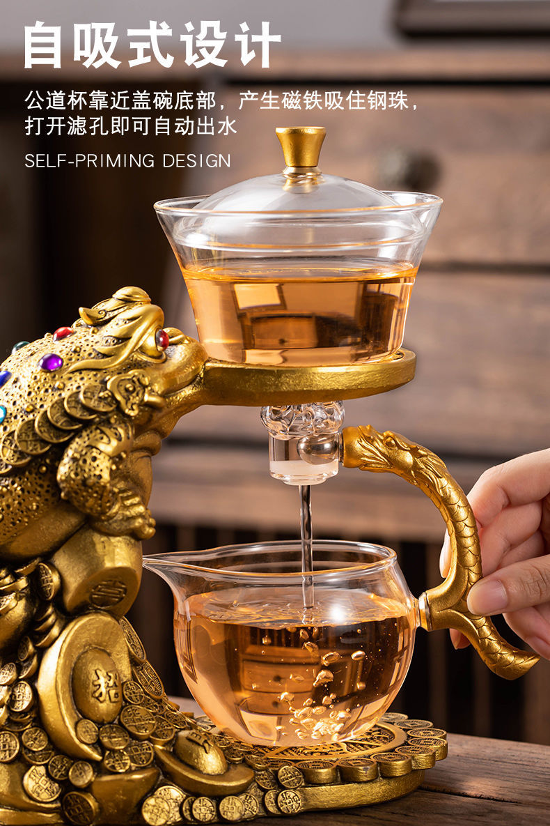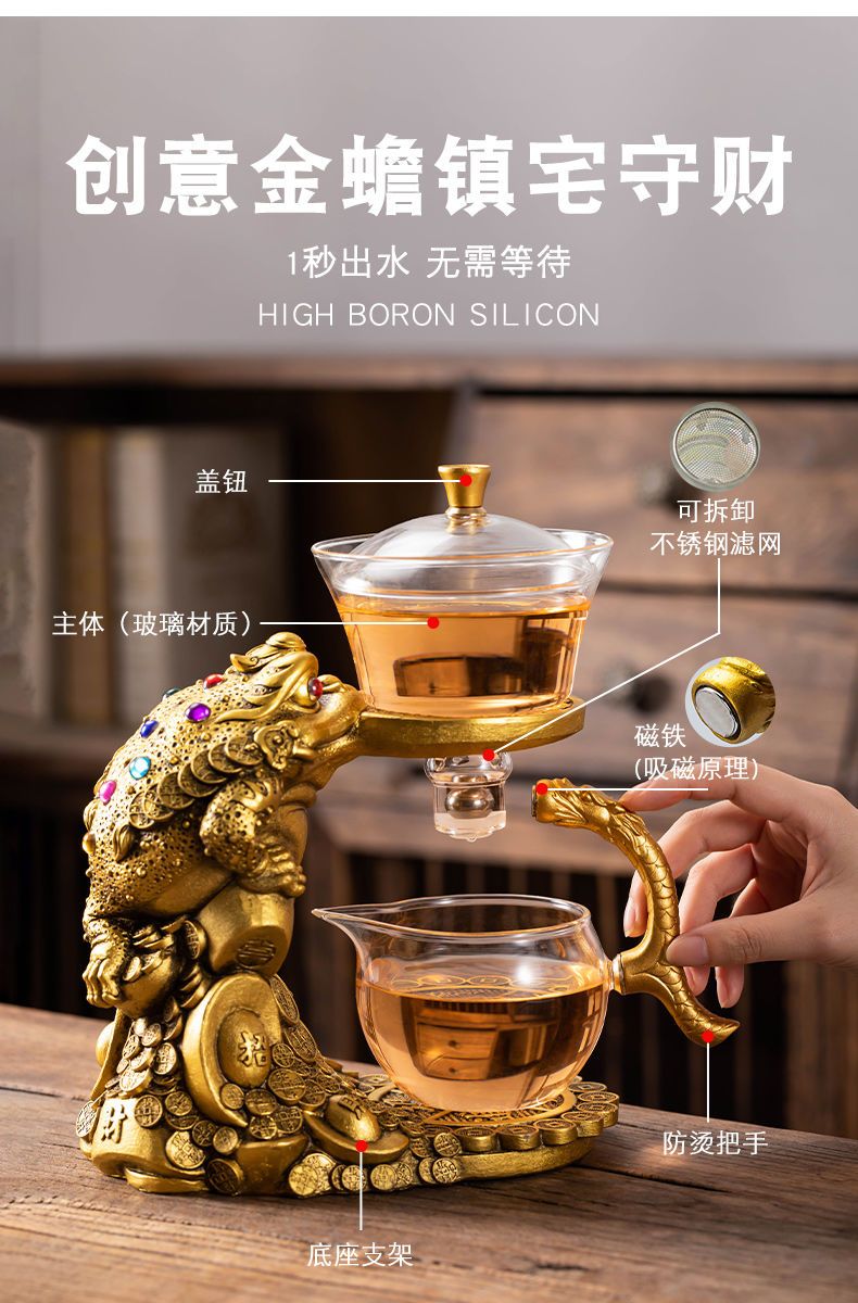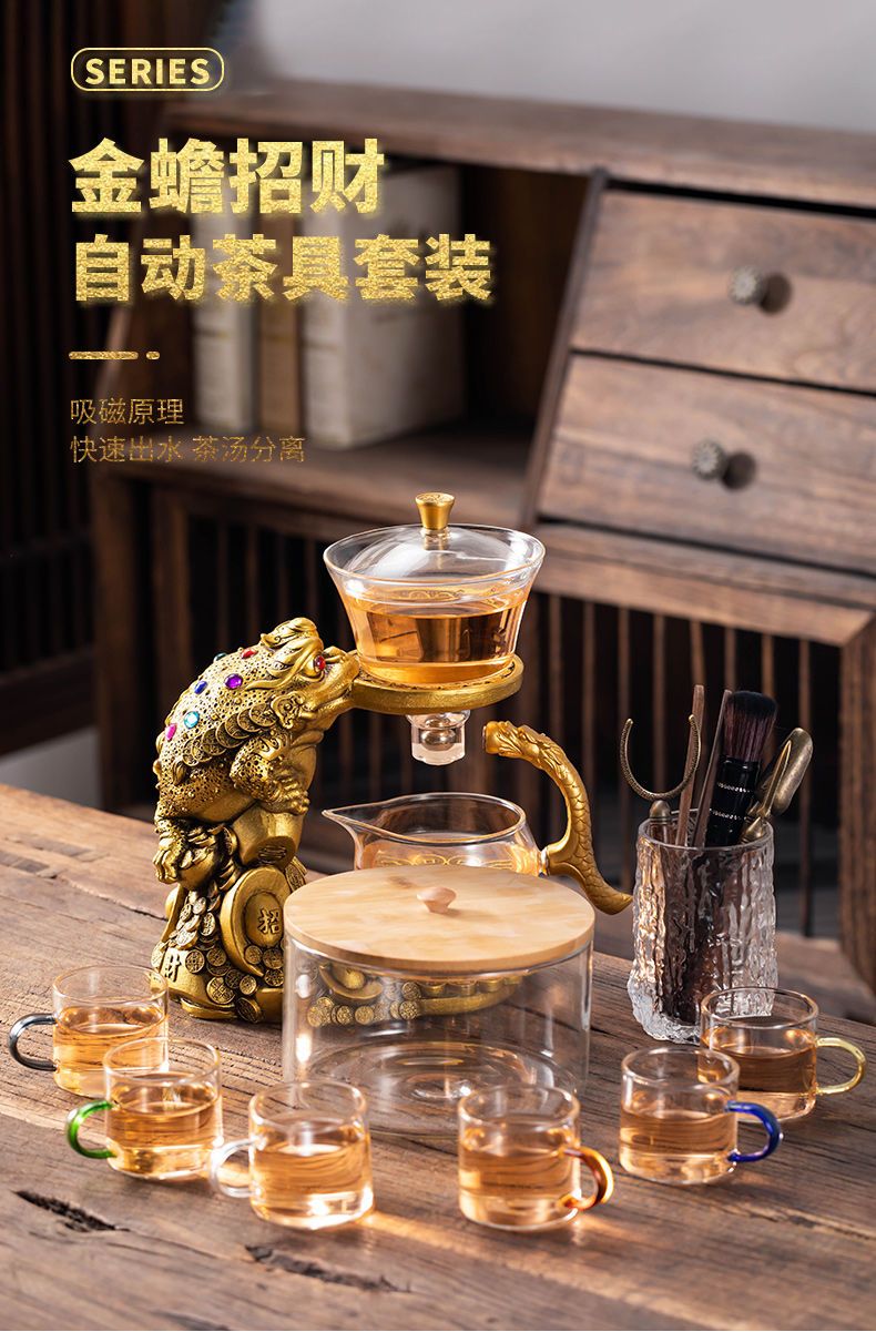 金蟾玻璃自动茶具小套装家用懒人泡茶神器办公室高档功夫茶壶