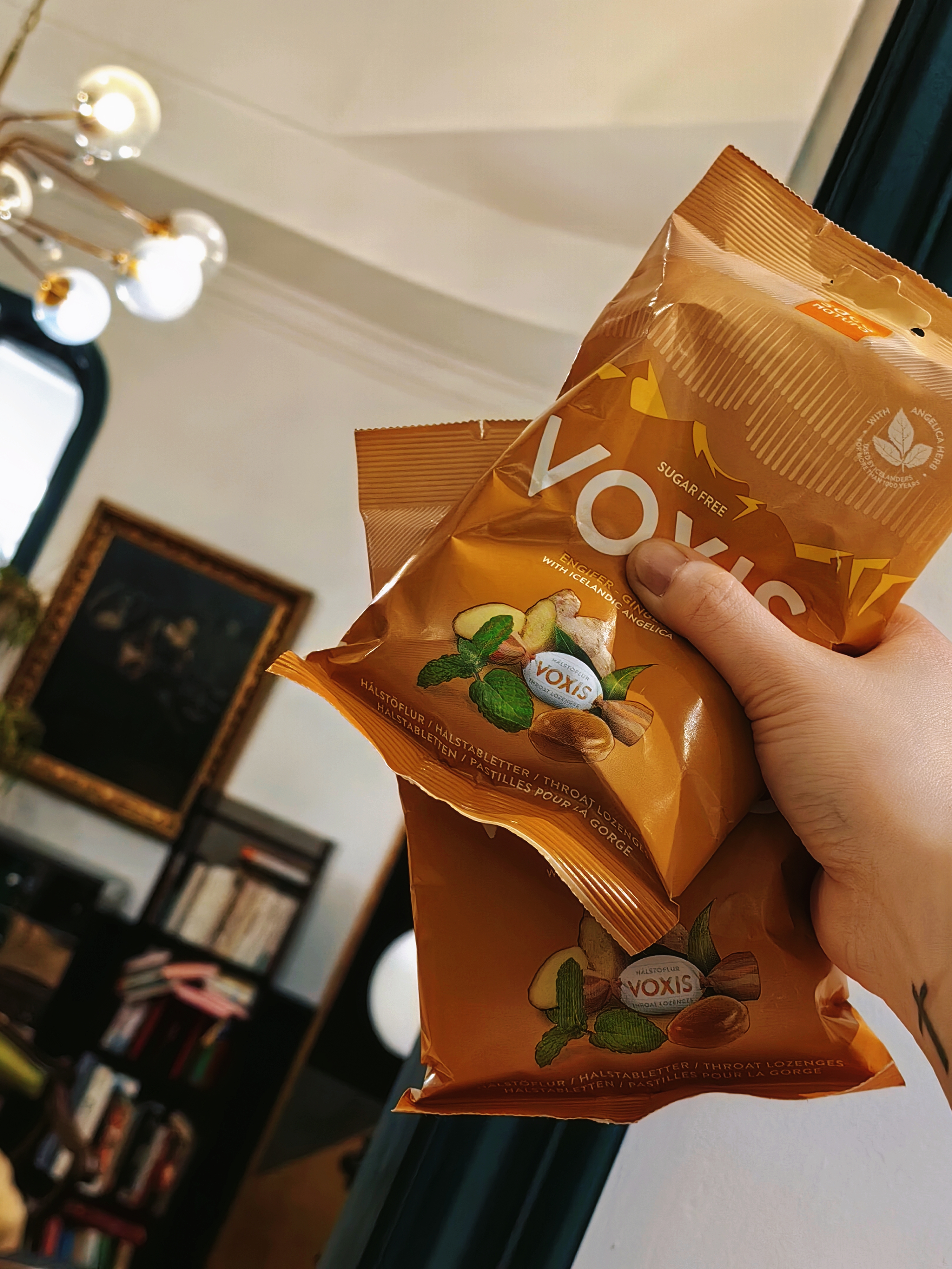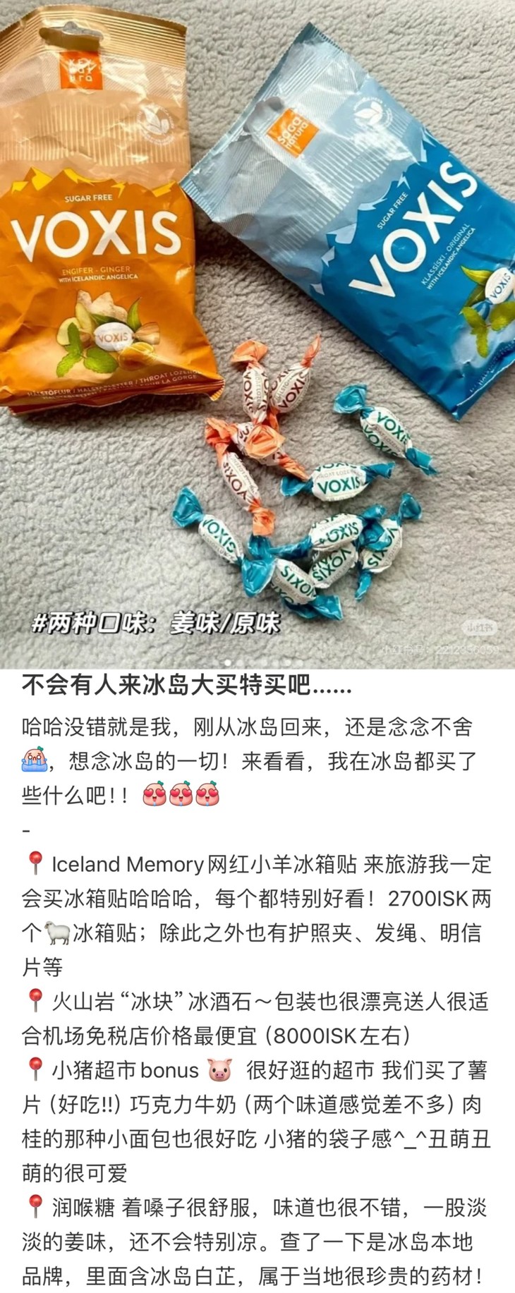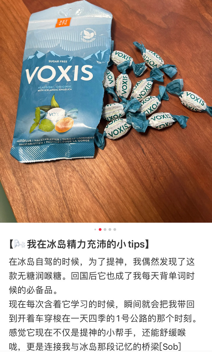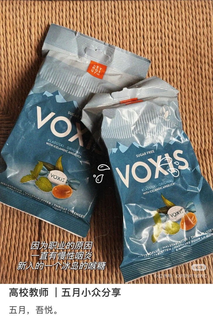 再来上个凉凉糖!这次回杭州,和家人朋友多年不见,每天都在不停说话,嗓子直接哑掉,带去的这包样品也是救了我,而且,几乎,吃光光。。。这包来自冰岛的VOXIS欧白芷润喉糖,基本上是每个去冰岛旅游的人都不会错过的伴手礼,也太太太适合冬天了!天气干燥,喉咙干痒,一颗就能顺畅呼吸,还能帮助预妨病毒,真可以小备!
