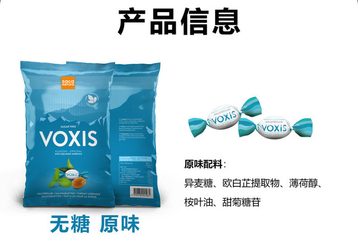 [屁侠推荐]VOXIS无糖欧白芷润喉糖原味 冰岛特产 80g/袋