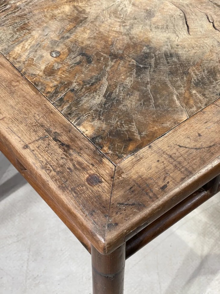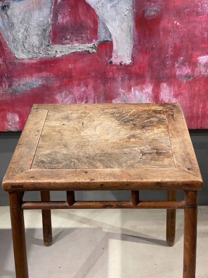 此张瘿木桌板榆木正方桌是北京转转会典藏数十年的藏品,历经多次年度“手作之美”生活美学展览,无论是单独展示,或是用于摆放展品,都是展场中令人瞩目的高雅明式家具,此方桌除足底端磨损、接缝几处松动裂痕以及表面正常使用细微磨损痕迹外(如图所示),基本保存完好,结构稳定坚固。(不含拍摄时,方桌上摆设物件)。