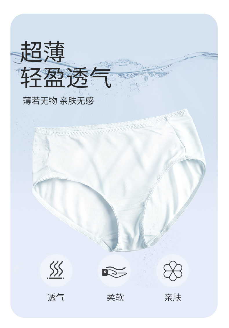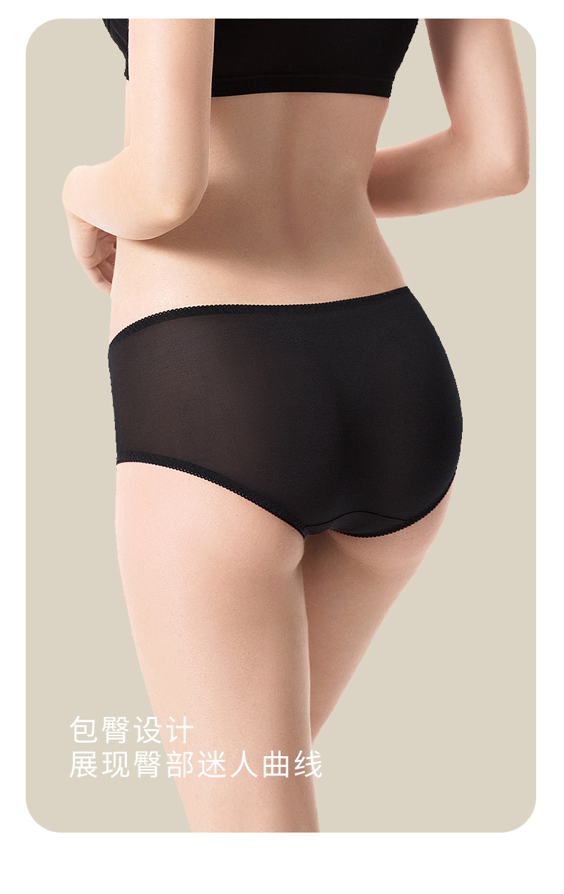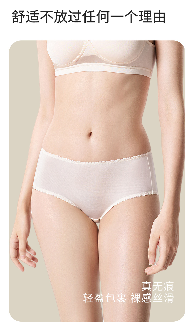【2条装】金三塔真丝中腰内裤女 100%桑蚕丝透气舒适小平角裤(私密物品不支持退换) 8NZW2201