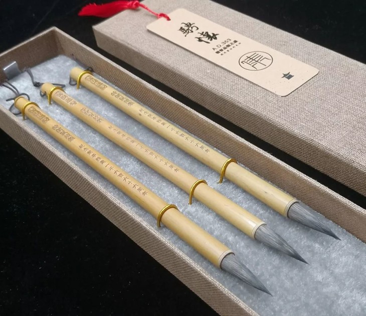 一位老顾客抢先看到这套笔,立刻下单3套,他开玩笑似的说:“这是我见过‘刻字最长’的毛笔,也是刻字最美的毛笔!”