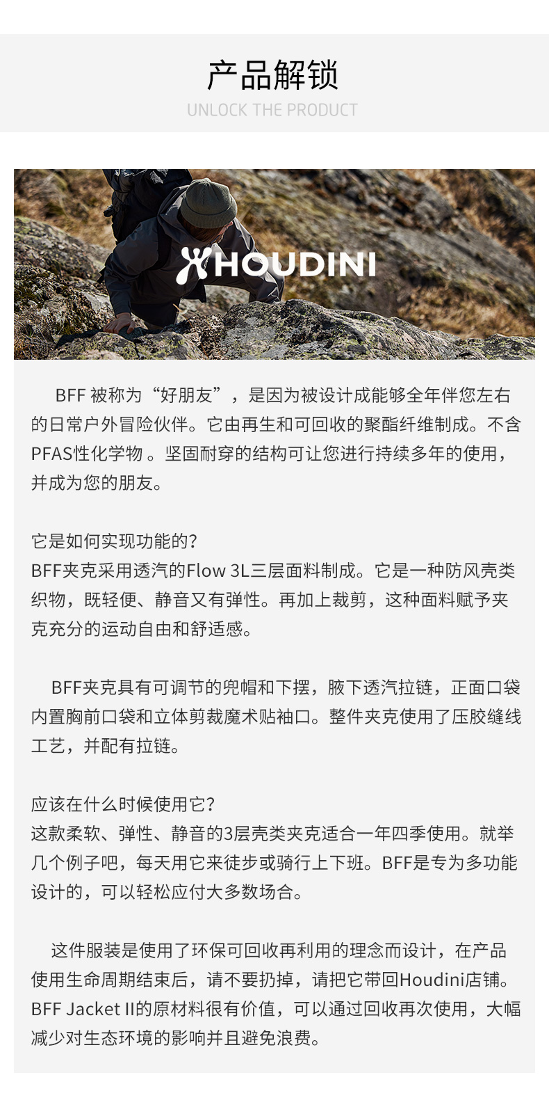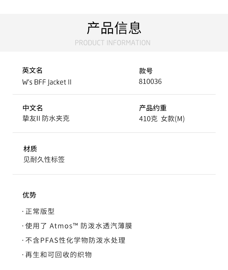 HOUDINI胡丁尼BFF Jacket挚友女户外秋防风防水登山夹克冲锋衣 810036
