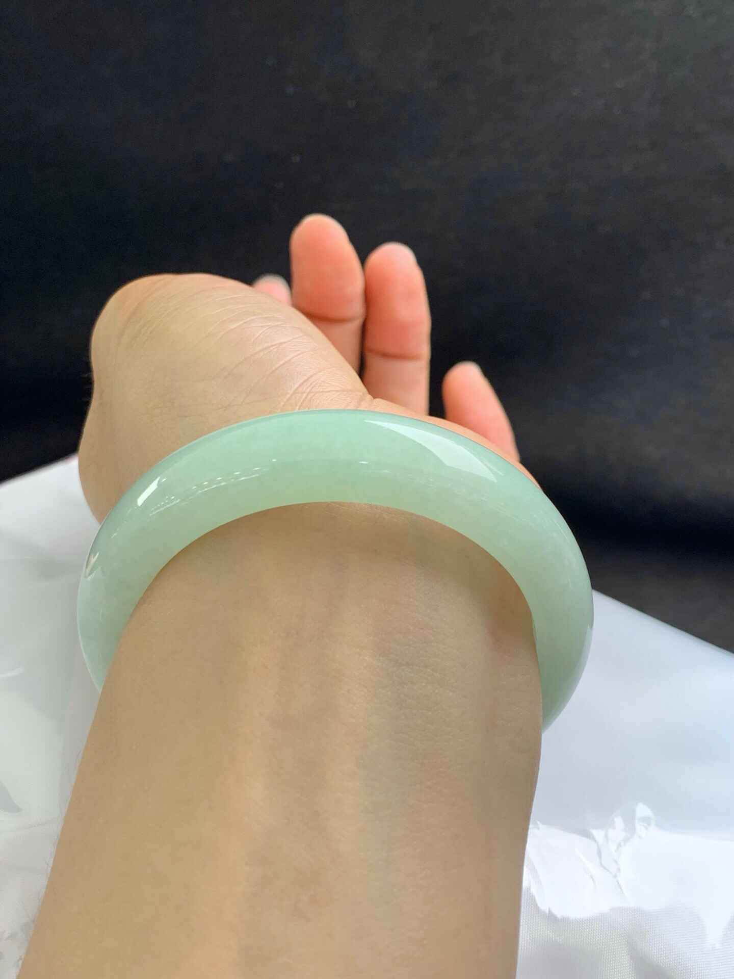 620593,54.8圈口,细糯化葡萄肉正圈平安镯,清爽晴绿底色,水润干净,完美,尺寸:54.8-12.9-8.3,超值价💰10500 #优石客珠宝#香玉荟萃