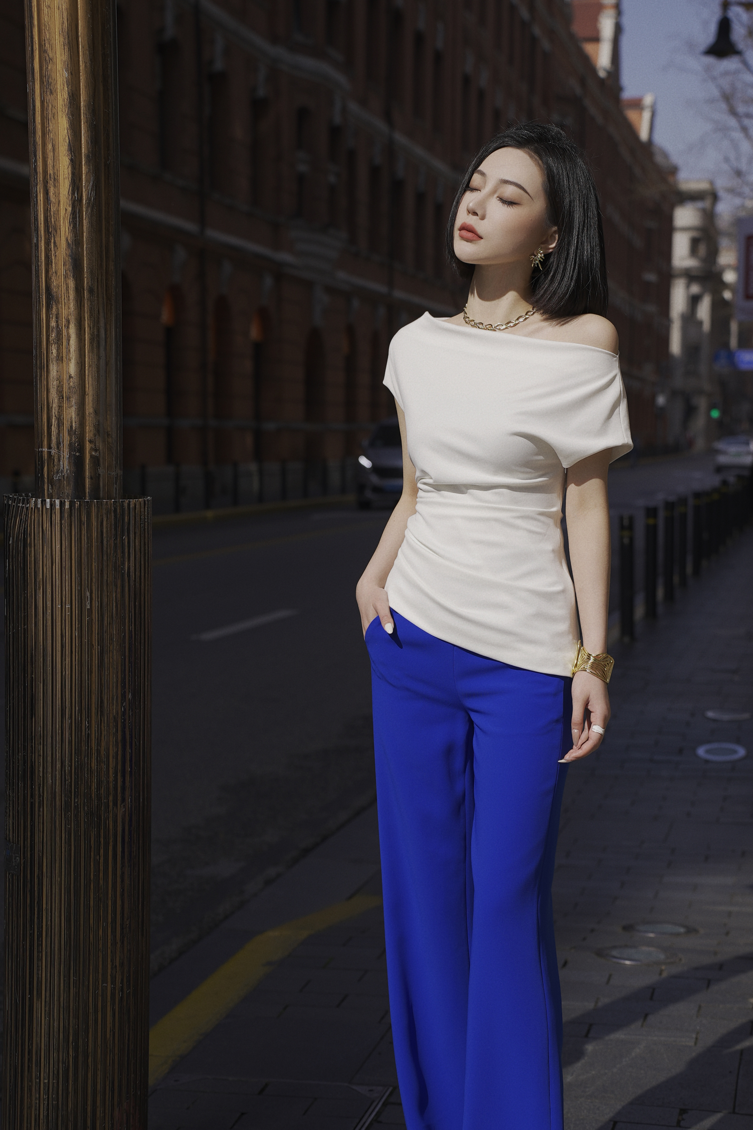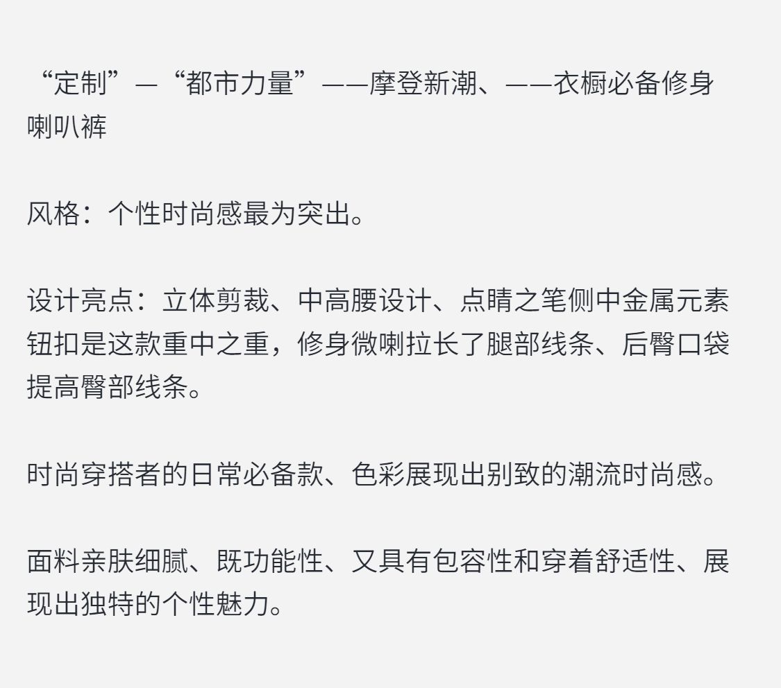 C系列——定制—都市力量—摩登新潮、衣橱必备修身金扣喇叭裤 2404004
