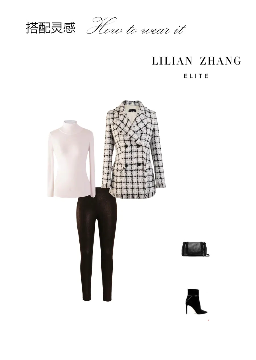 定制—“通勤风”ELITE-英伦格纹双排扣粗花呢小香风外套 1905022