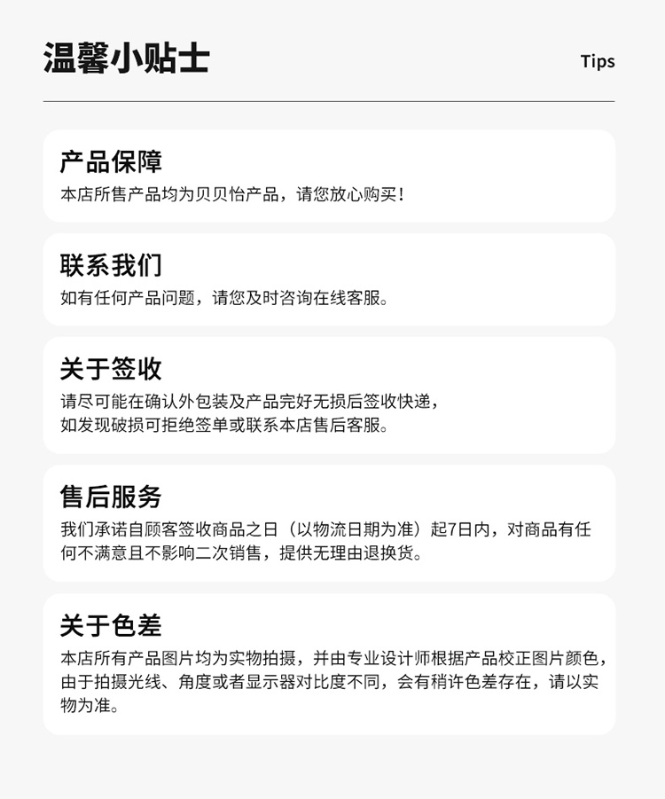 - 贝贝怡专注0-6岁婴幼儿服饰,坚持安全、柔软、舒适的产品理念,为千万中国家庭提供超高品质、安全可靠的婴幼儿服饰产品,妈妈放心,宝宝开心!