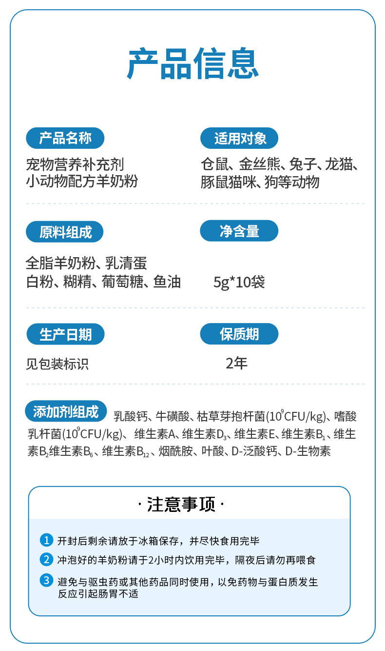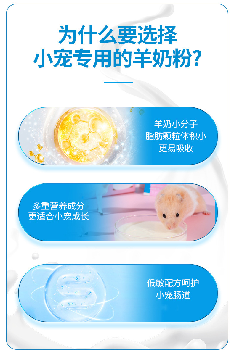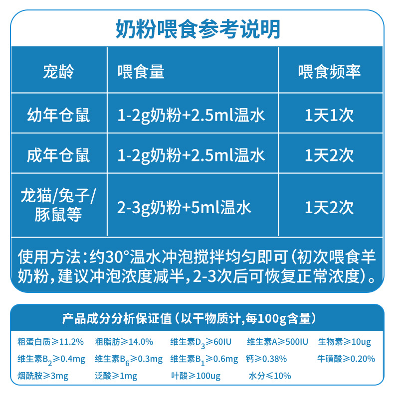 毛团兽小动物 多营养配方羊奶粉50g/盒 仓鼠营养补充剂金丝熊龙猫豚鼠通用