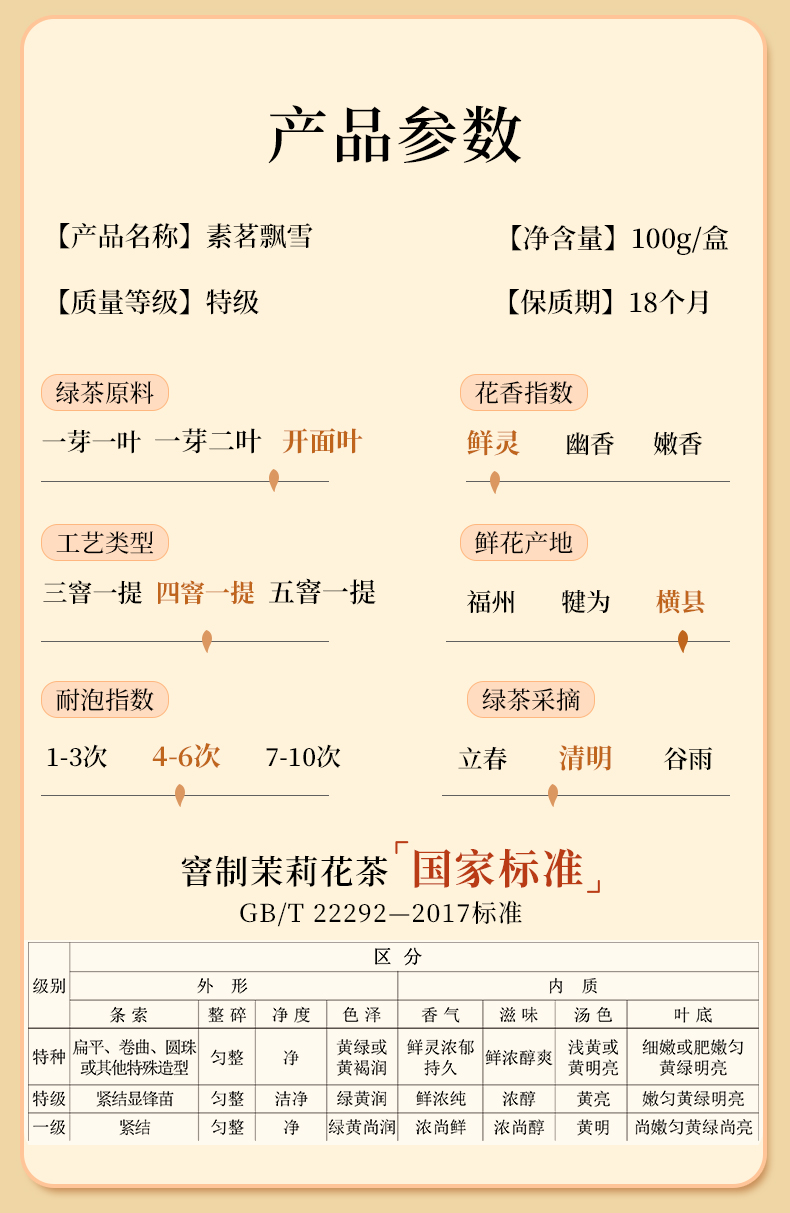 茶叶 四川峨眉高山 素茗飘雪 茉莉花茶 2024新茶 龙芽大师 茶饮 100g