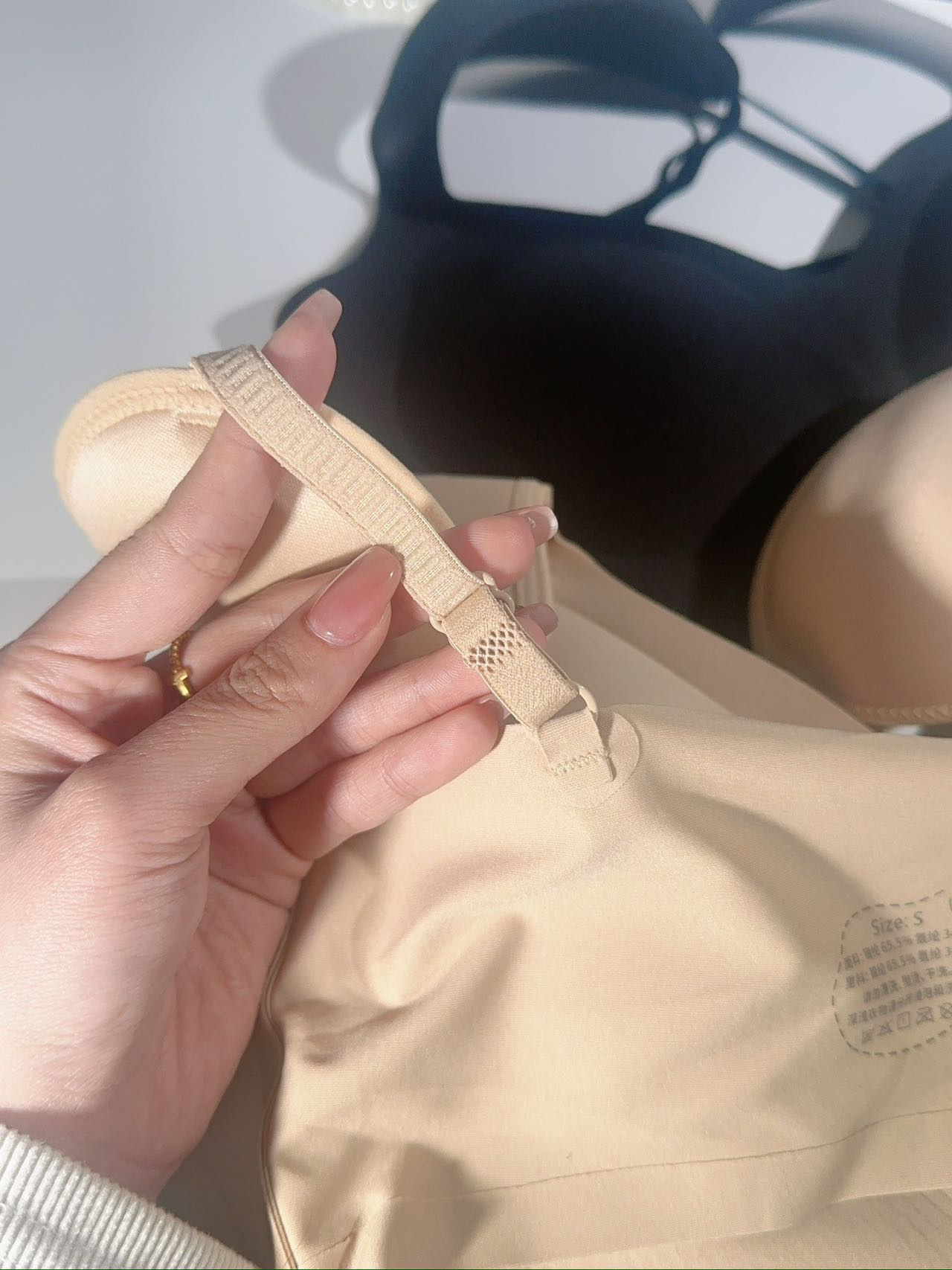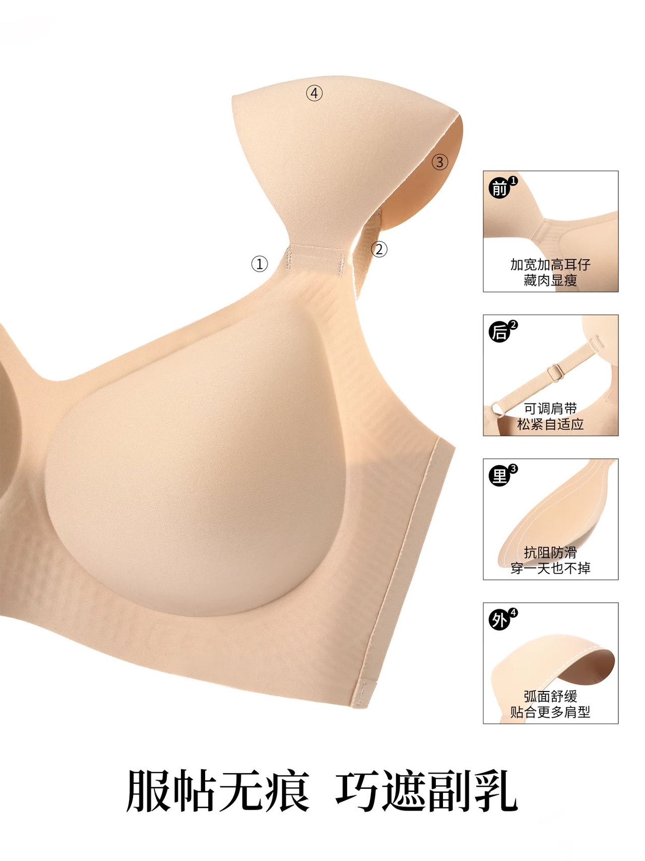把垫肩藏在 bra肩带里,独家定制,大胸显小,一秒get直角肩。