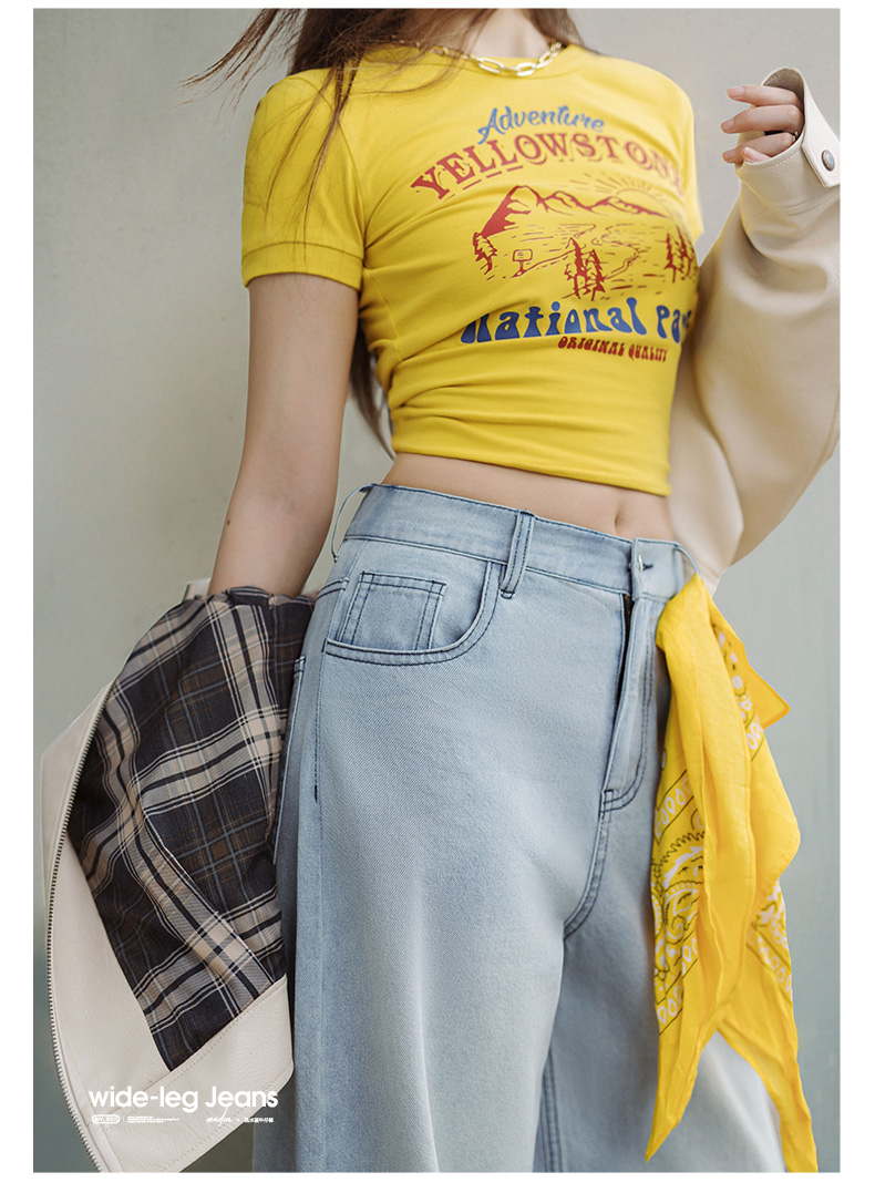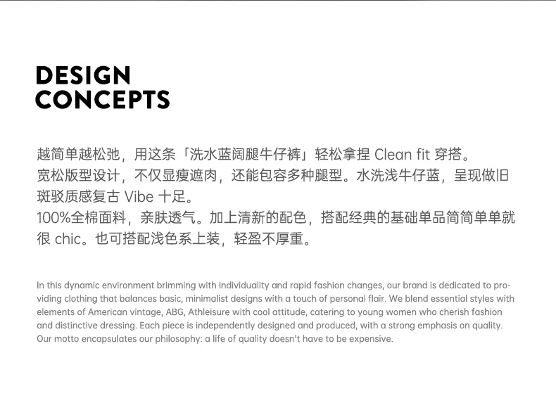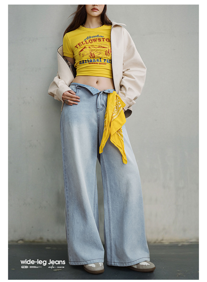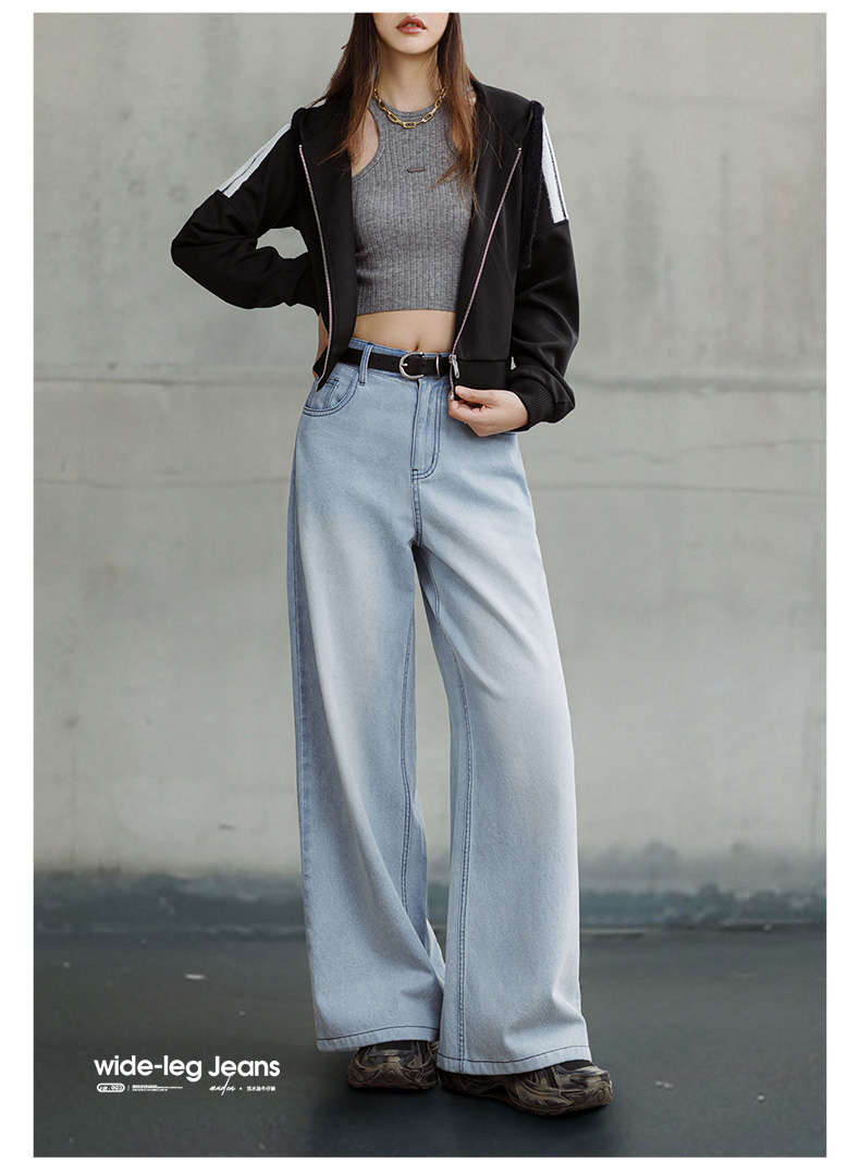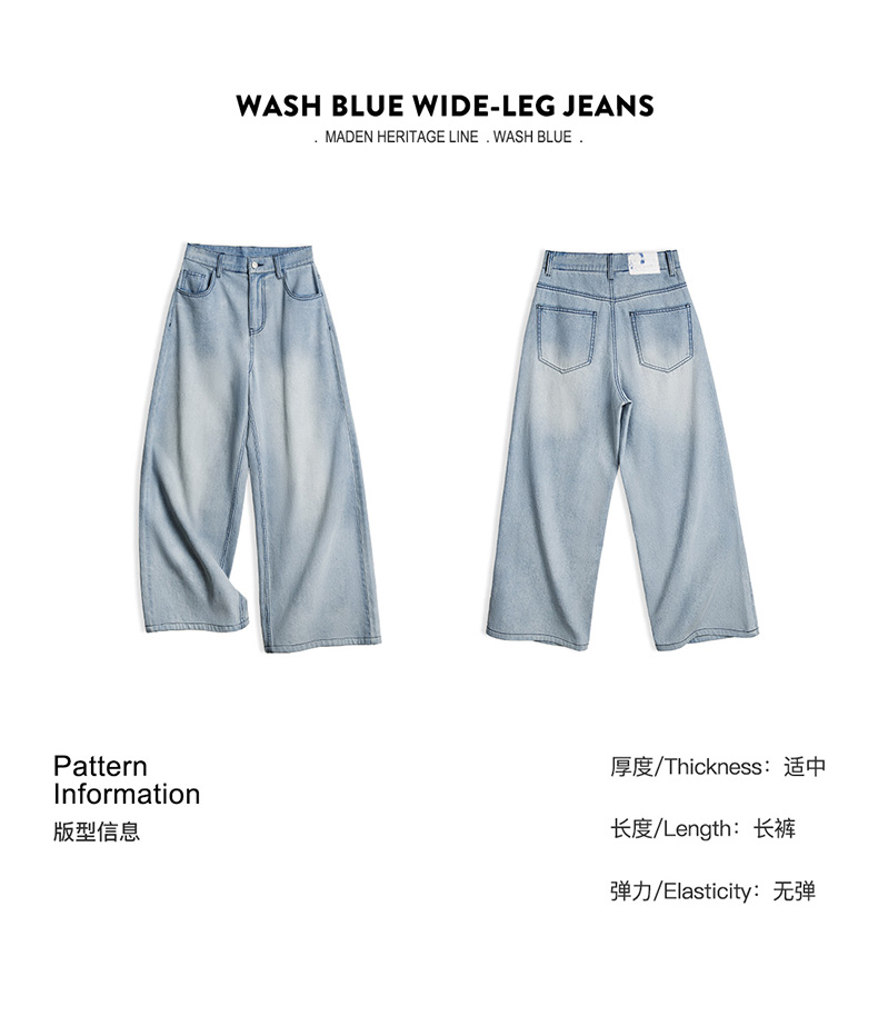 马登美式复古洗水蓝阔腿牛仔裤宽松做旧百搭直筒裤全棉透气轻盈长裤女