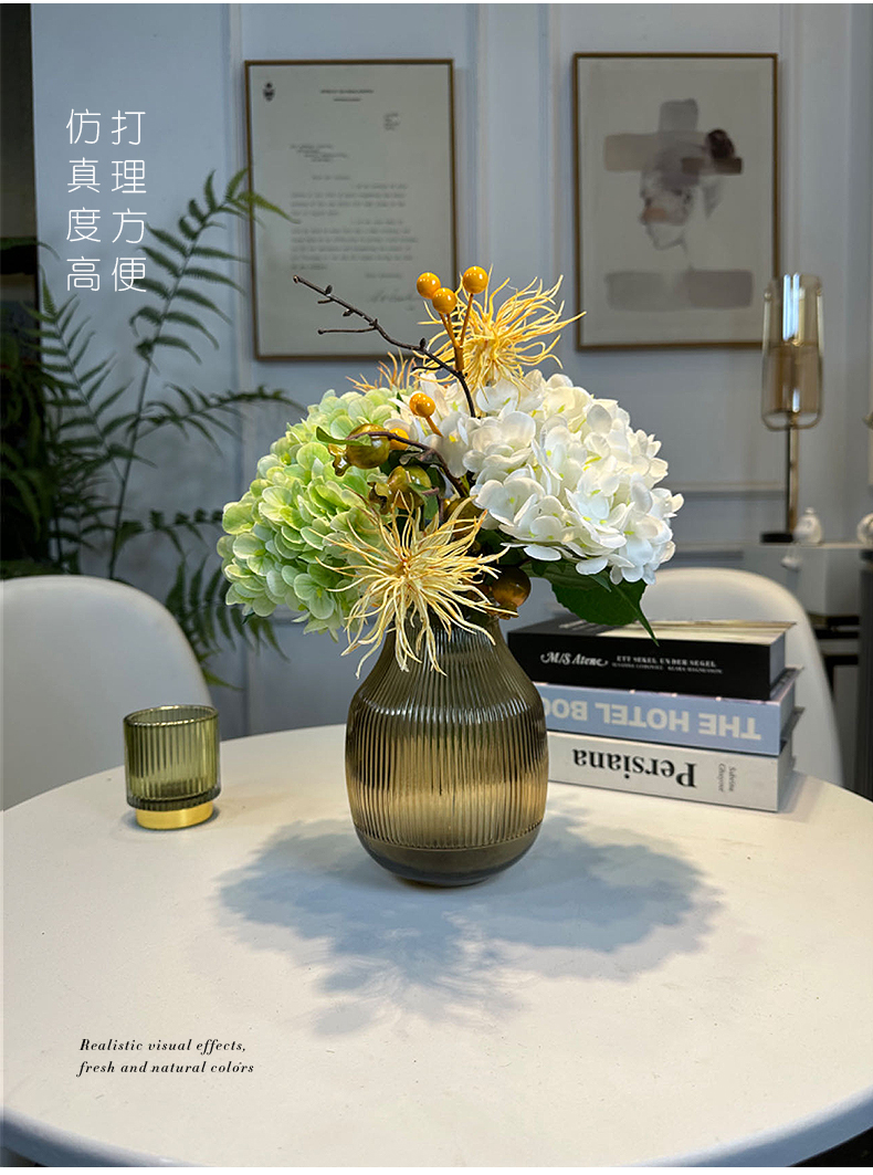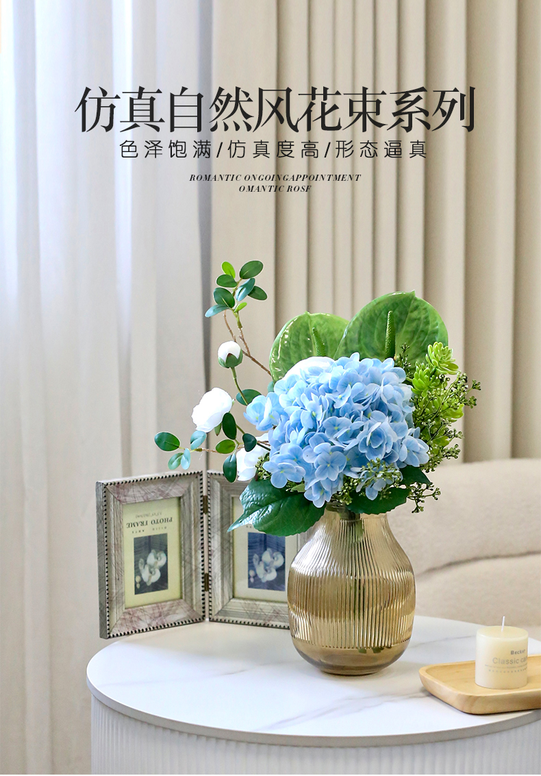 轻奢高端仿真花摆件酒店客厅花束假花摆设件绣球蝴蝶兰餐桌装饰花