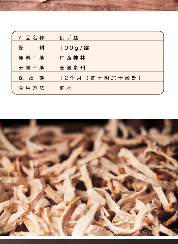 *自营*佛手丝100g*2大罐。广西桂林金佛手柑。大片切丝。