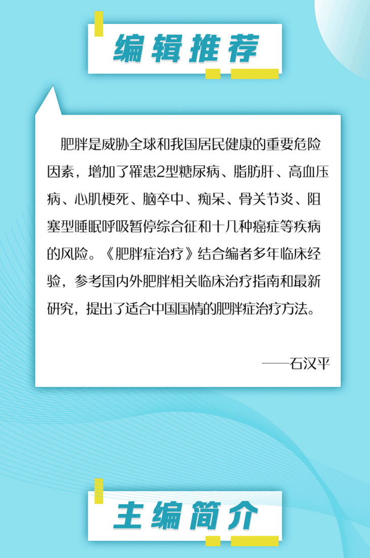 肥胖症治疗 朱翠凤 胡怀东 石汉平 超重与肥胖症综合诊断防治策略 药物手术饮食运动心理等治疗方法