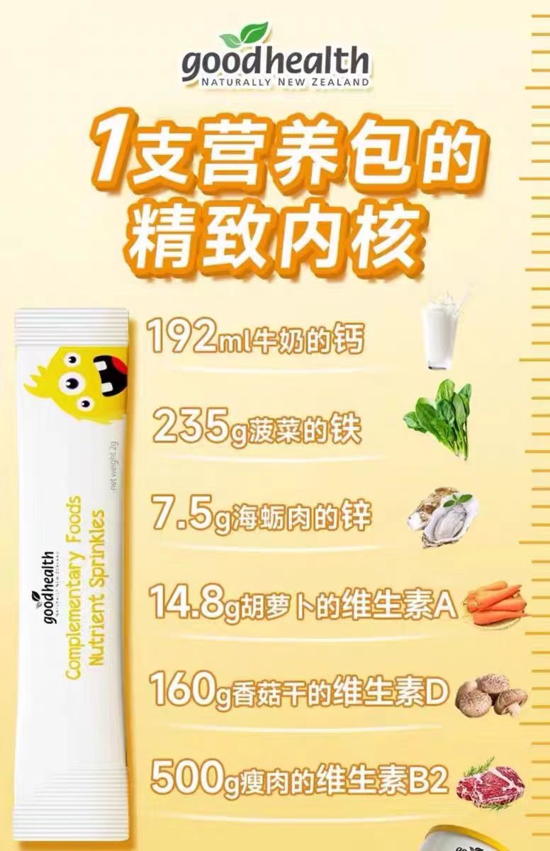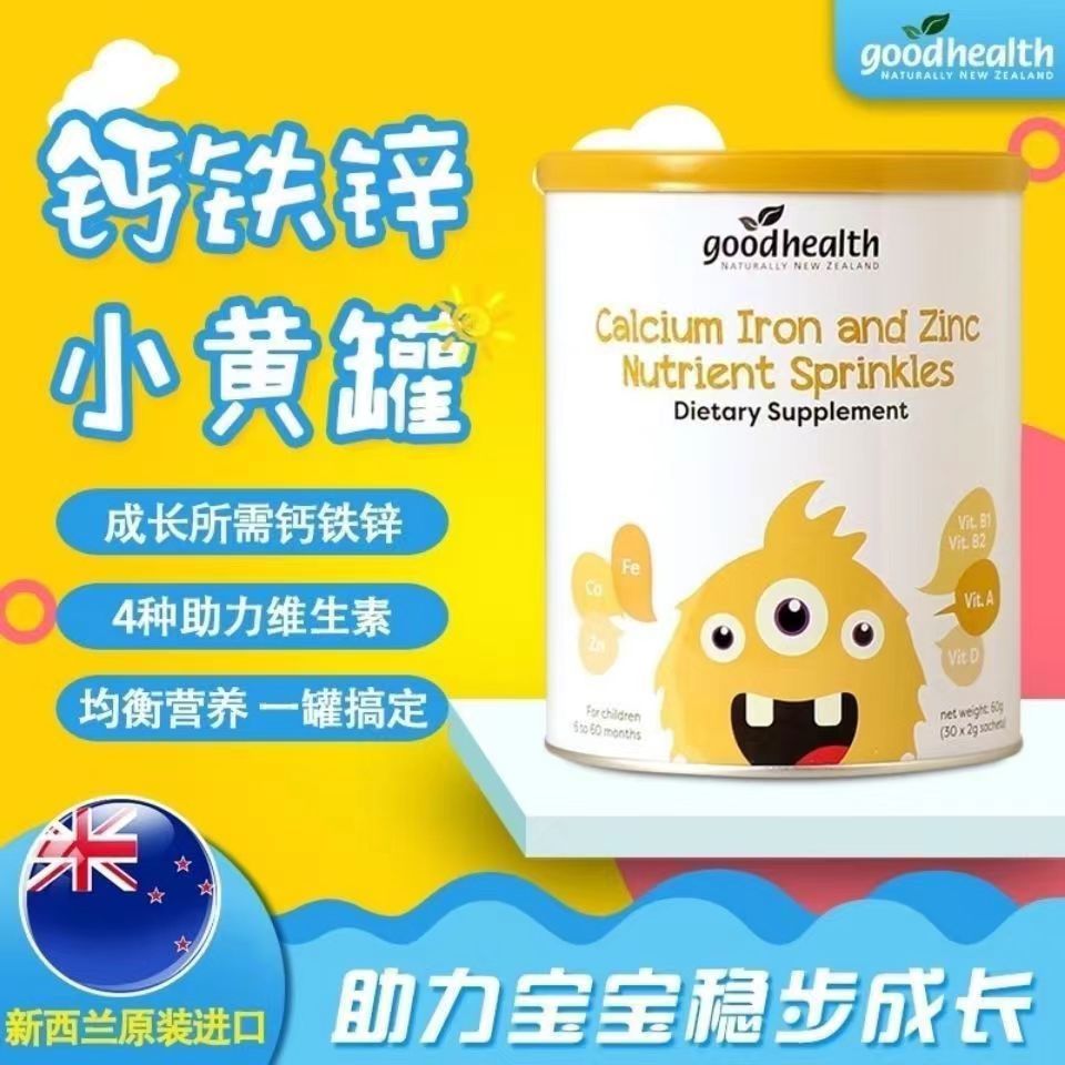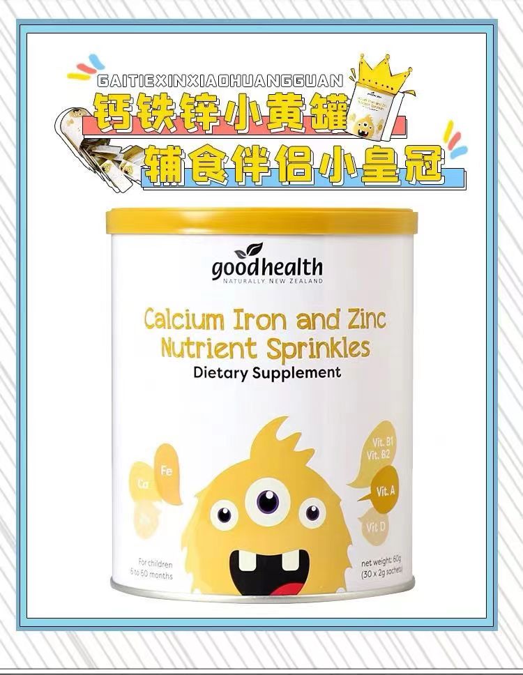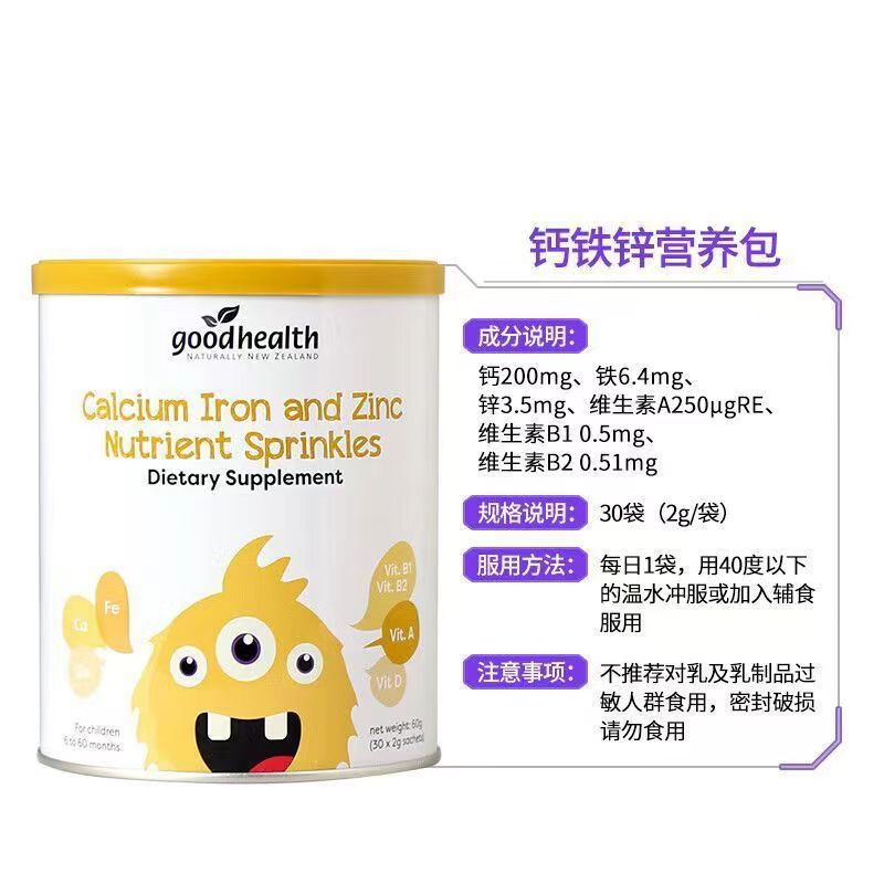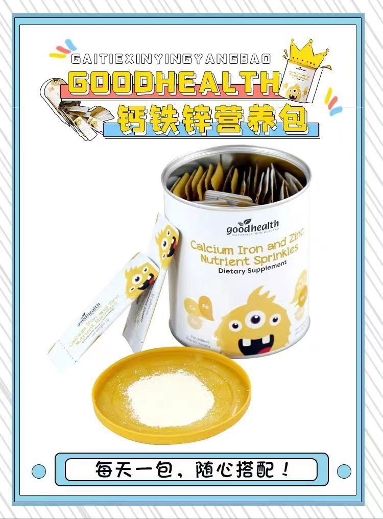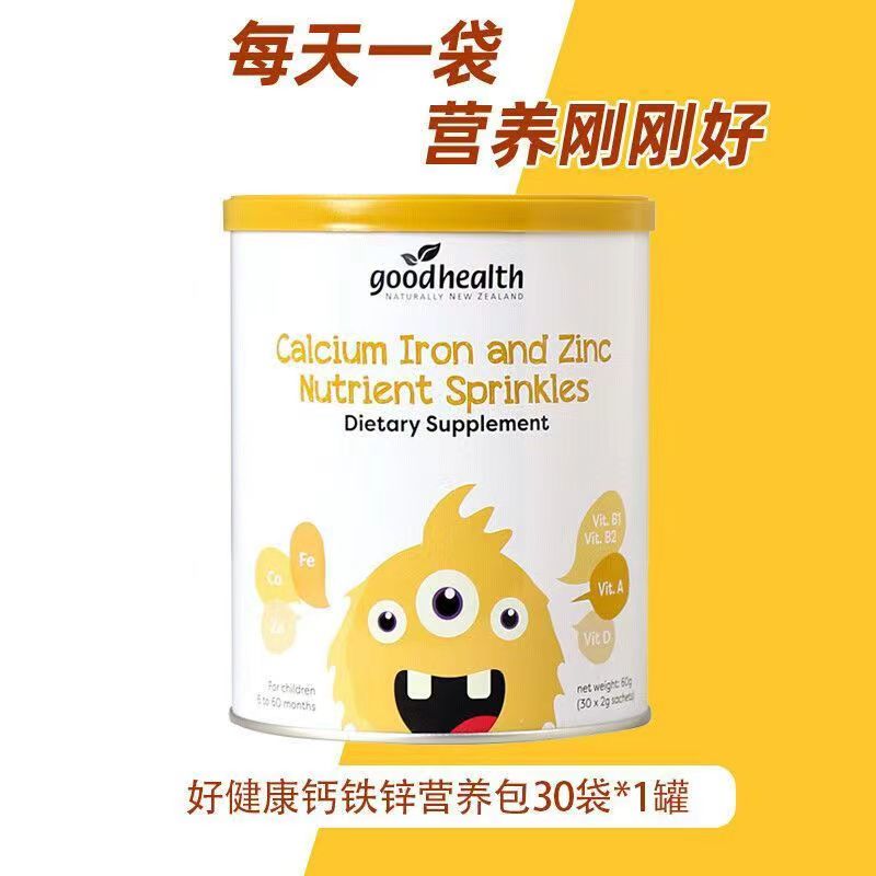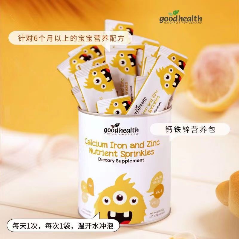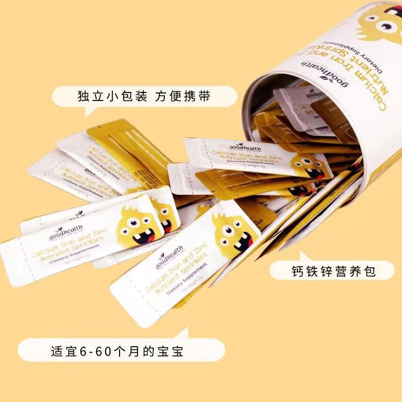 【一般贸易】新西兰进口Goodhealth好健康钙铁锌营养包婴幼儿儿童辅食2g*30袋/罐