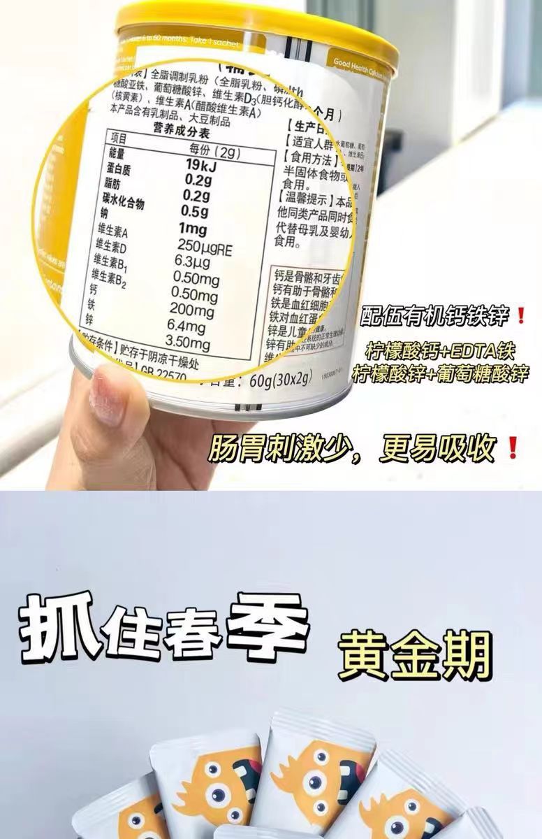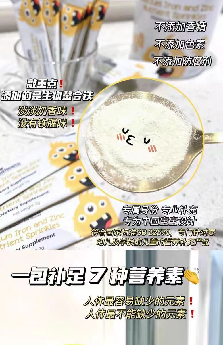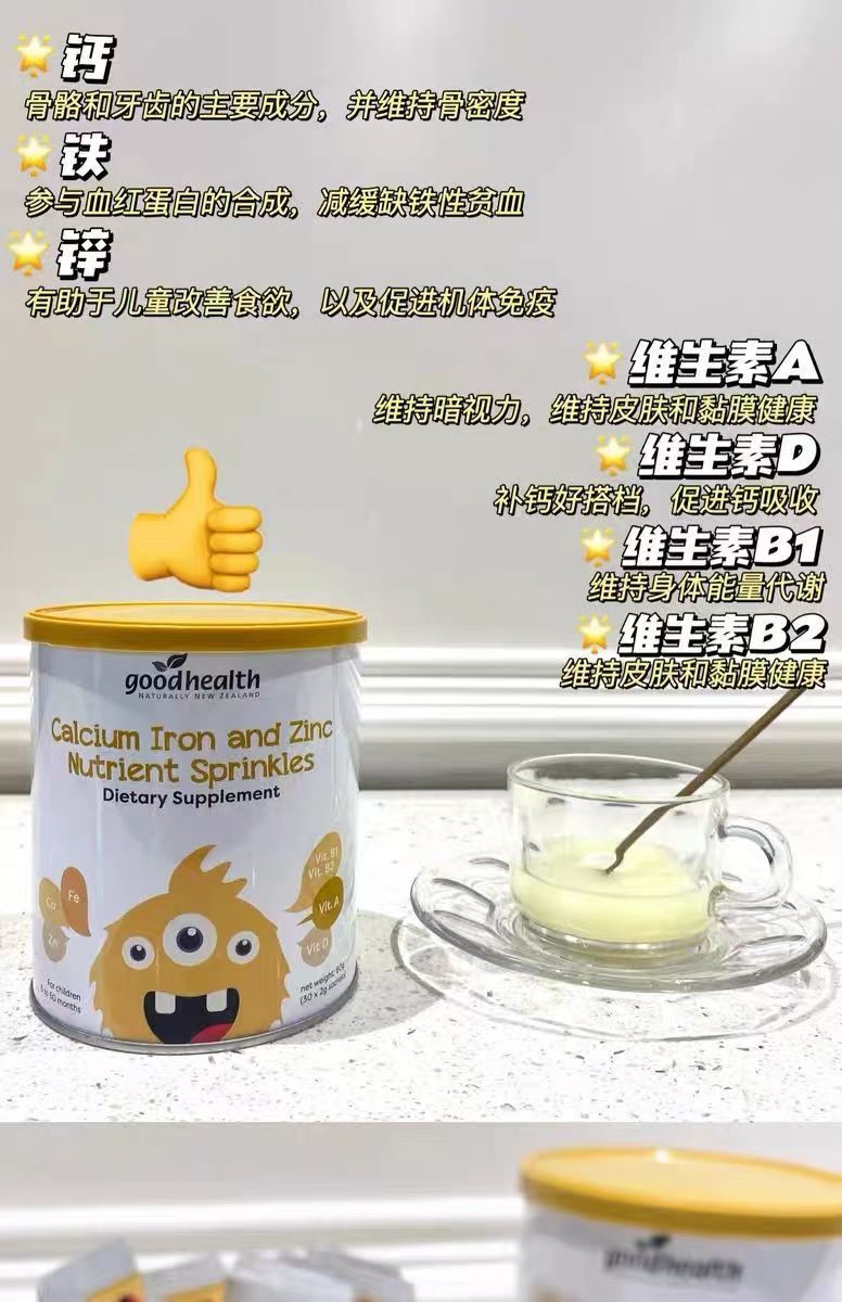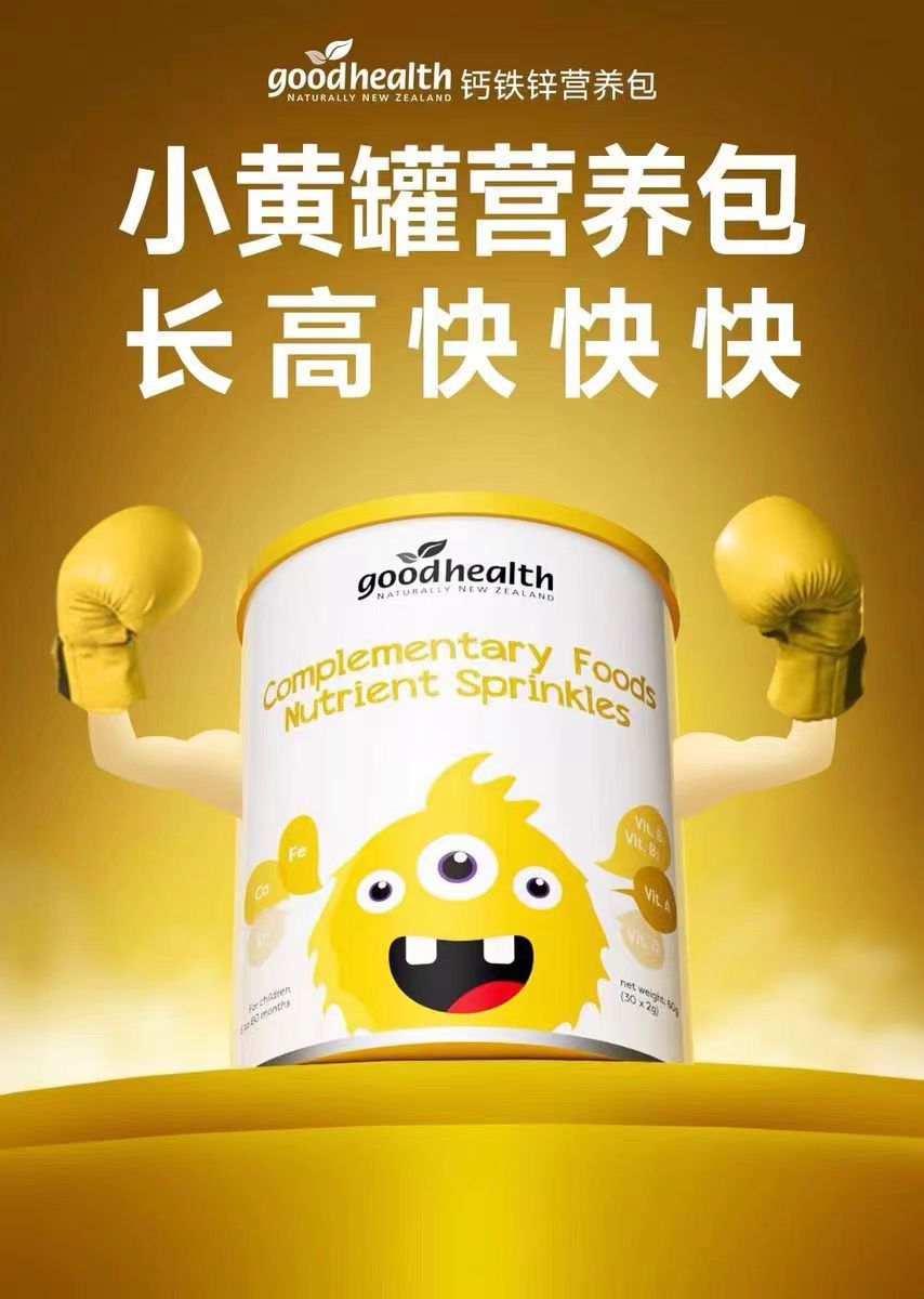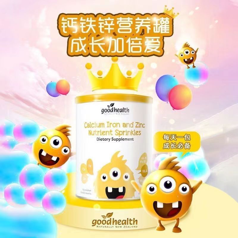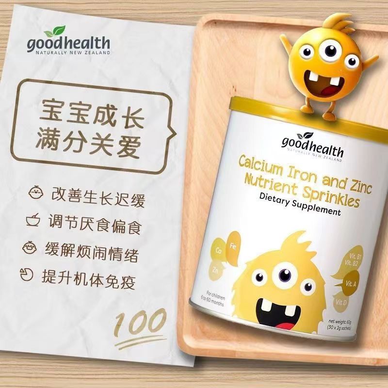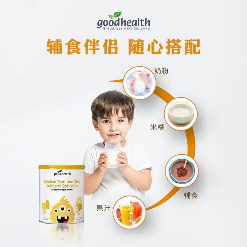 【一般贸易】新西兰进口Goodhealth好健康钙铁锌营养包婴幼儿儿童辅食2g*30袋/罐