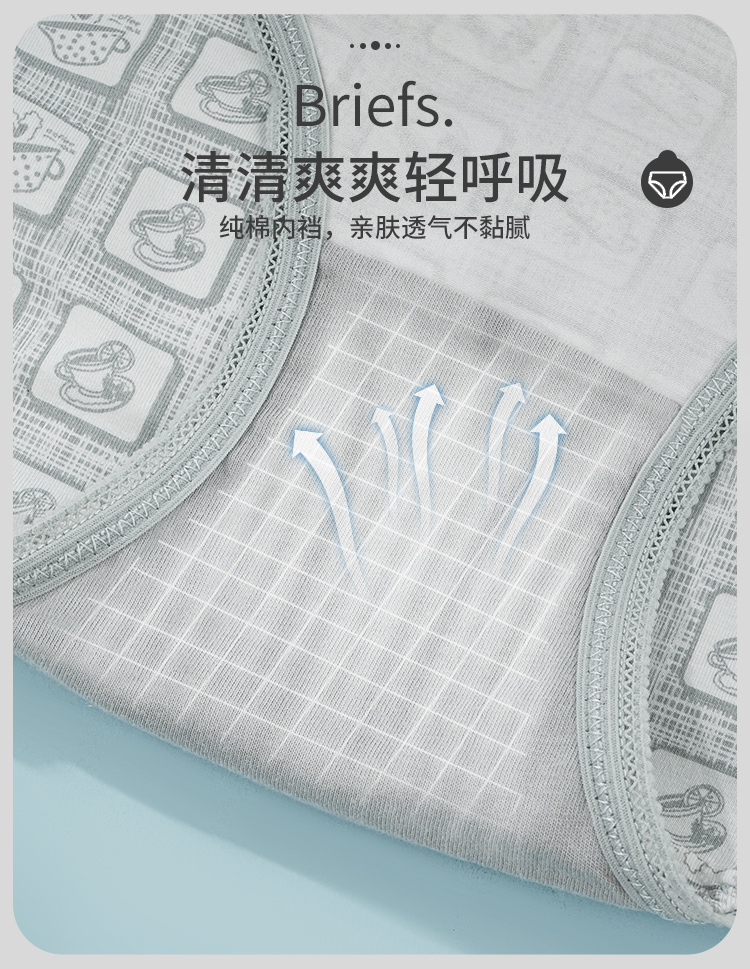 雅黛丽女士中腰平角裤趣味格子印花棉质舒适透气内裤5条组合装DYK03059(5条装)