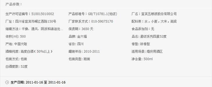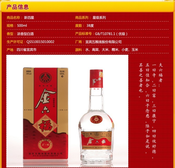 【12年老酒金六福】 新四星 52° 浓香型白酒