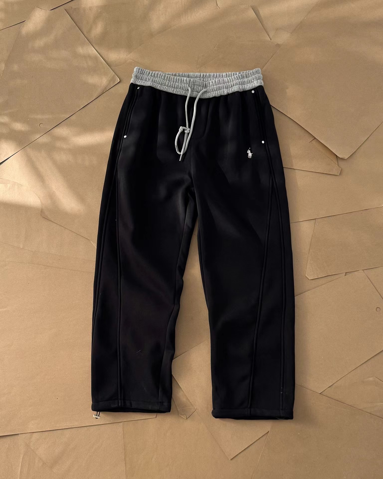 整体多裁片,立体剪裁!精典的弯刀裤型,修饰腿型,显瘦显腿细!男女上身都好看绝绝子!通勤百搭不挑人!拼接色腰部,宽幅松紧腰,好看又舒服!加绒加厚,500克重磅复合面料,亲肤舒适,保暖有型!