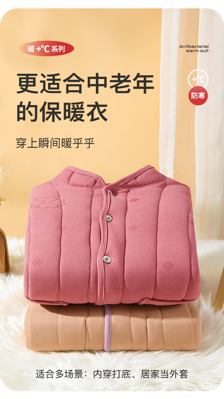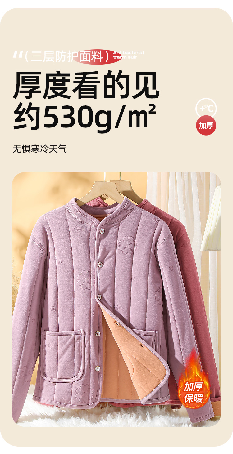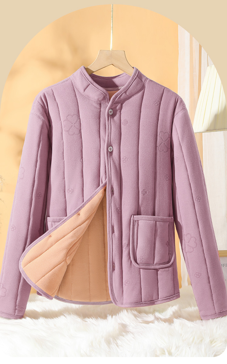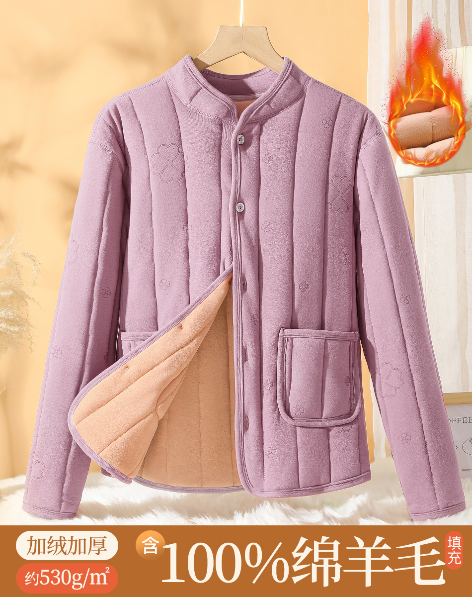 【100%绵羊毛填充】加绒加厚530g中老年妈妈装保暖开衫2388女士四叶绗缝上衣