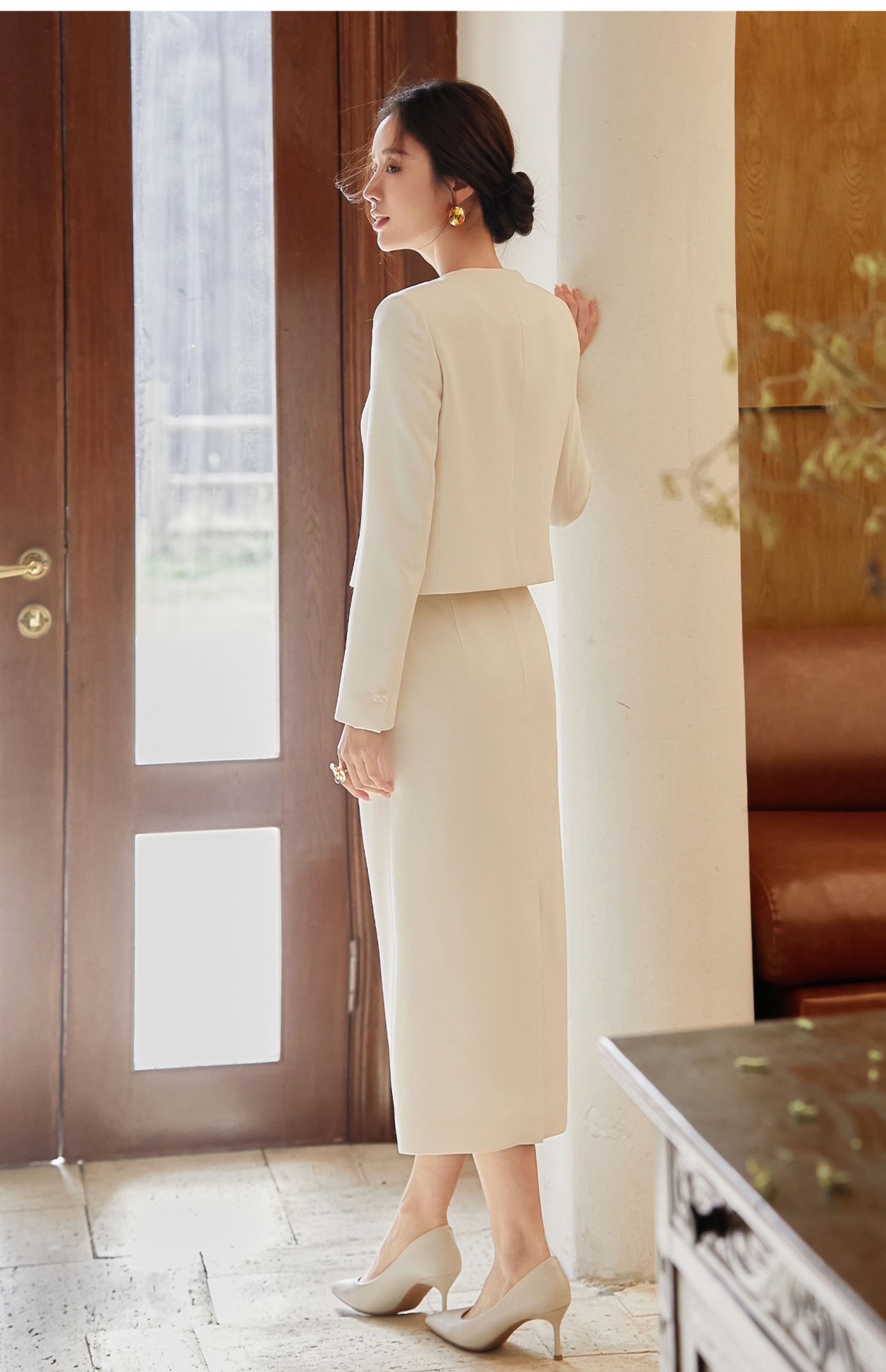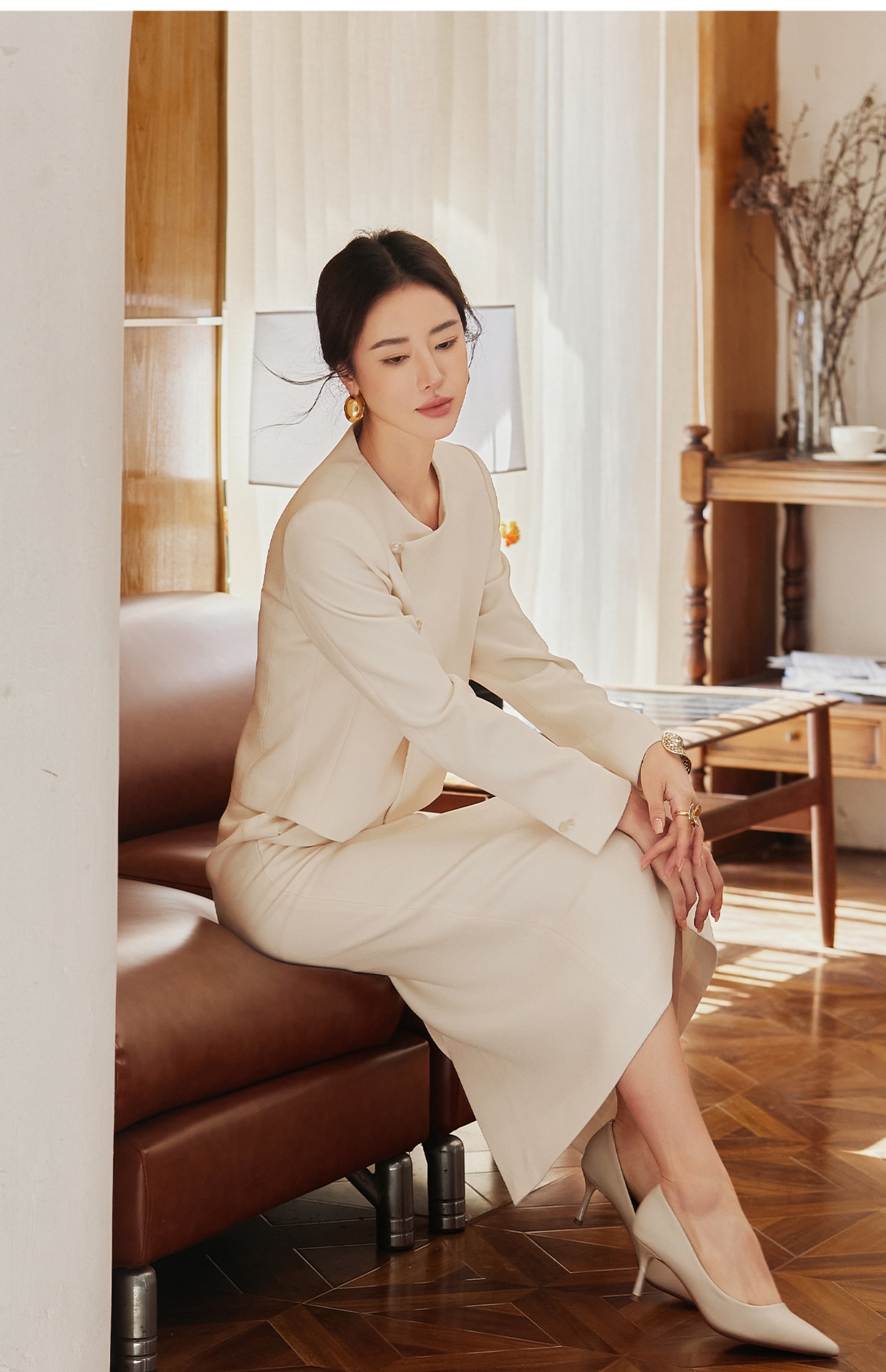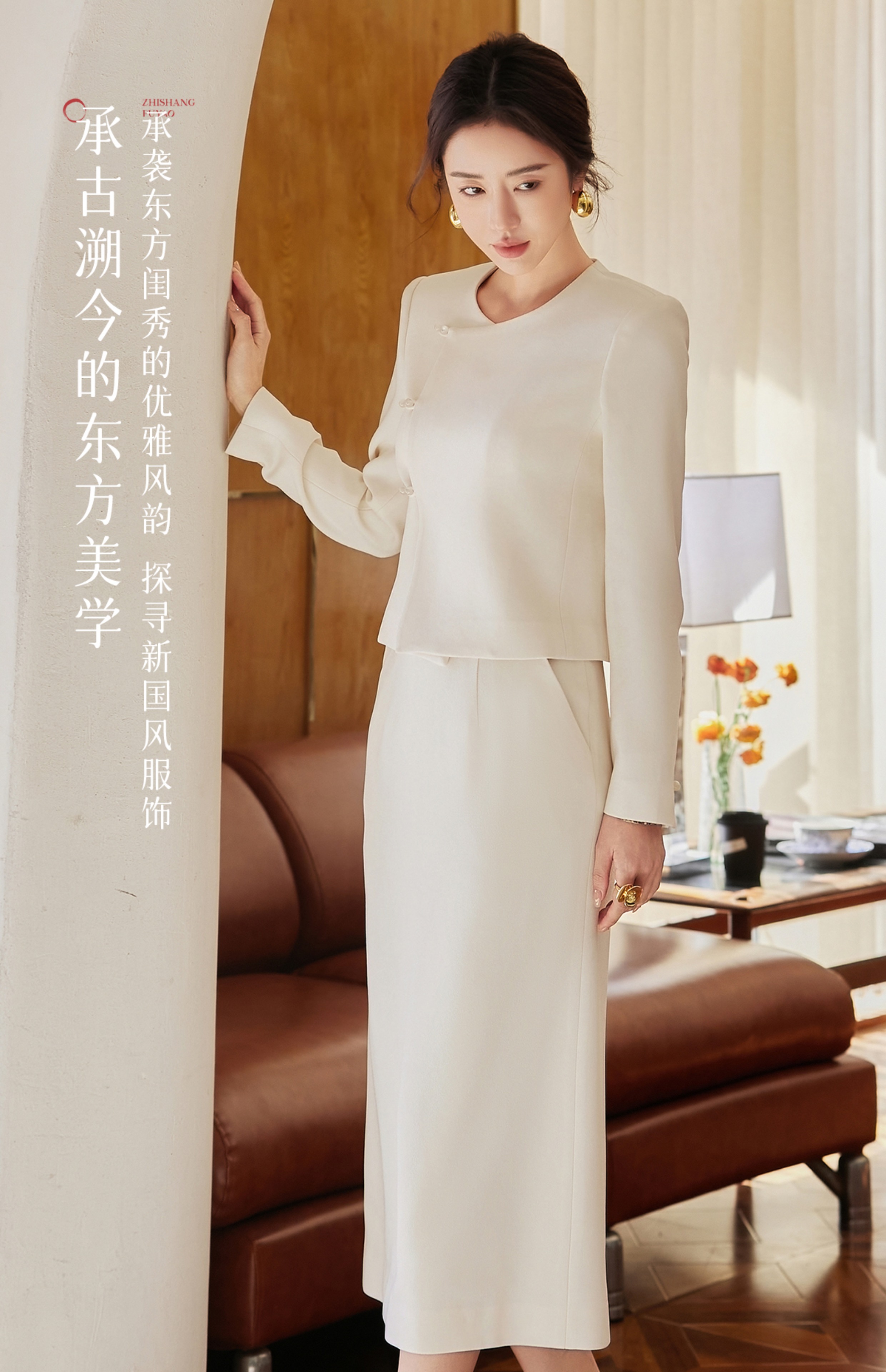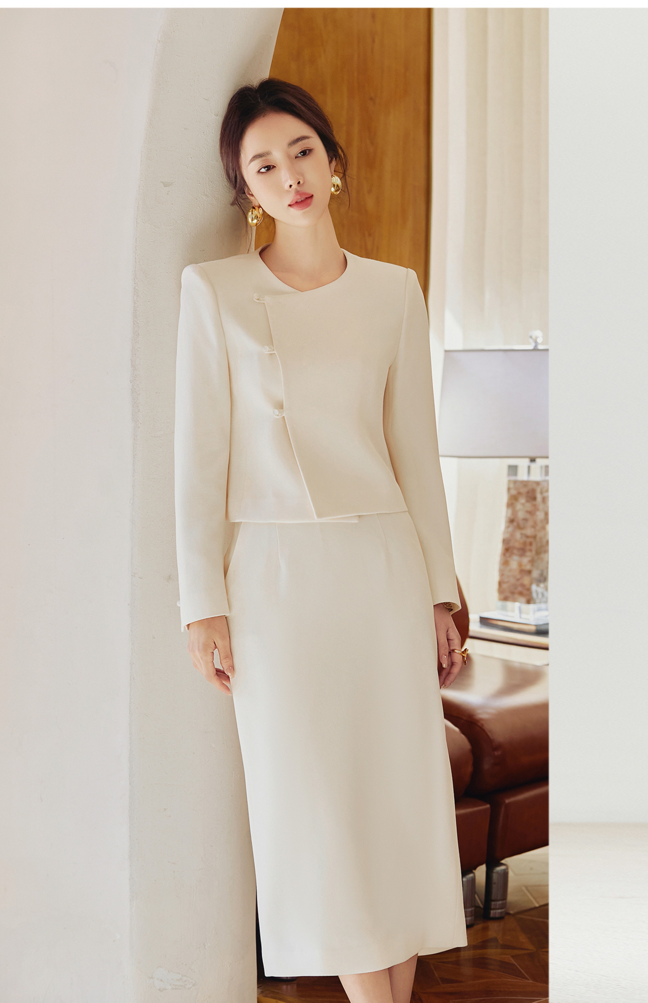 FUYAO扶摇 国风盘扣西装套裙女2025春新款高级感新中式圆领短外套