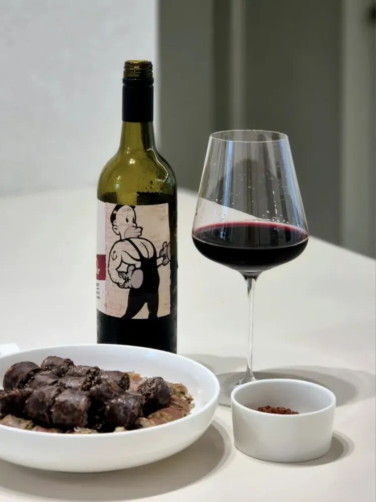 深邃的墨紫色,酒如其名般肌肉感爆棚、极具张力且强劲,青梅的酸甜被淡淡奶油包裹,透出成熟黑莓、李子和黑樱桃果香,随后是醇厚黑巧克力、摩卡咖啡、焦糖布丁、甘草和辛辣胡椒香气。质地紧致,柔软且富有弹性,深色莓果的香气占领高地,柔软的李子与橡木相结合,细腻且辛辣的肉桂、胡椒香料完成收尾,适合搭配红肉及意面,优雅复杂。