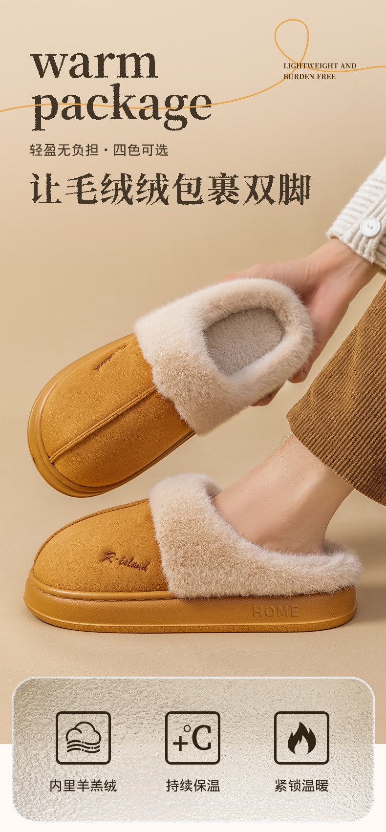 【厚毛绒 巨保暖】小暖炉麂皮绒包跟棉拖鞋 舒适保暖 毛绒鞋口 EVA防滑 保暖包跟月子鞋 男款/女款
