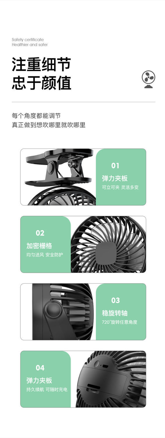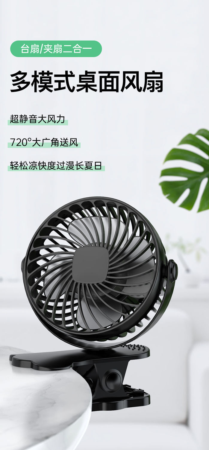 USB小风扇迷你学生宿舍充电台式夹子便携式桌面床上静音小型电扇