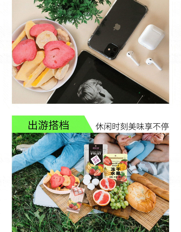 四季屋混合冻干水果草莓+芒果+香蕉50g