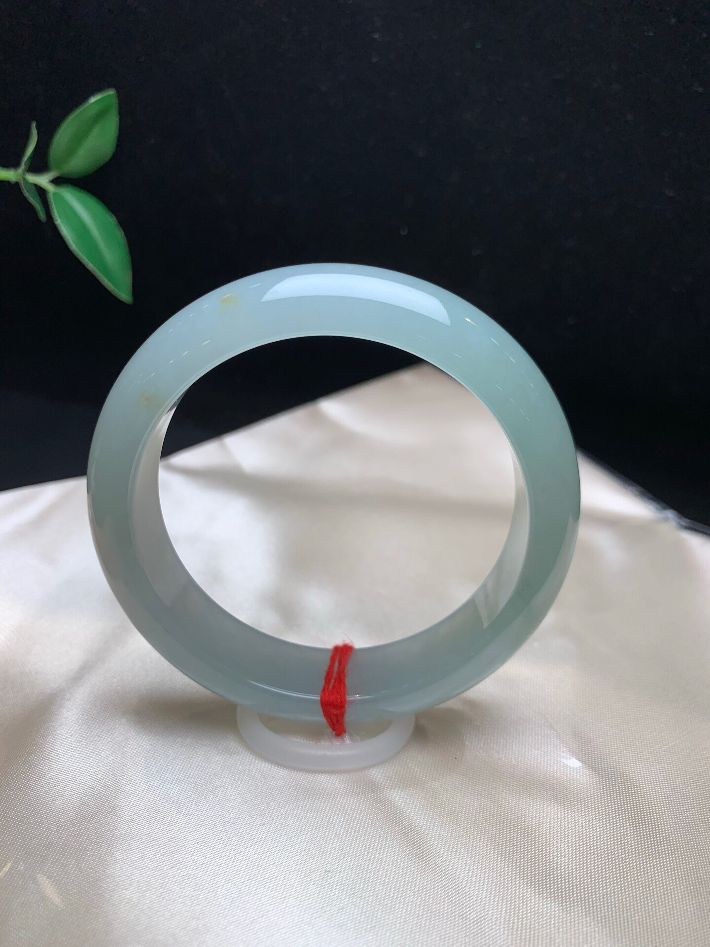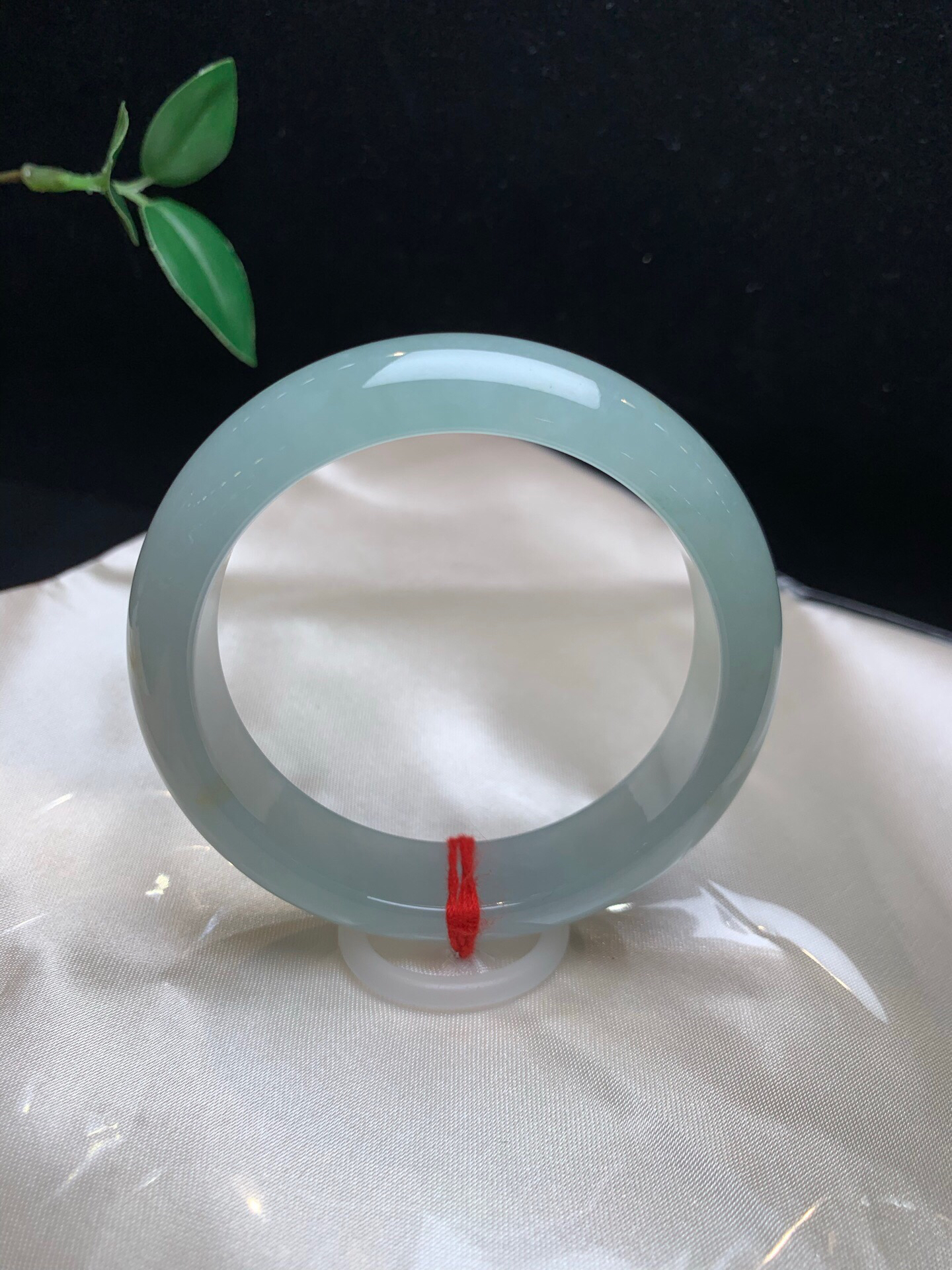 612581,56.3冰晴底宽版手镯 ,版型好,整条带晴底。冰透均匀。带了几点特色撒金。