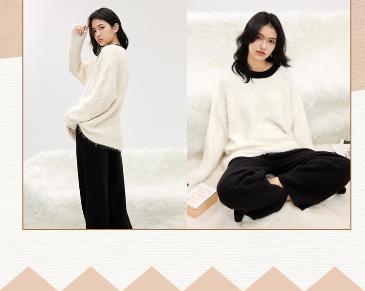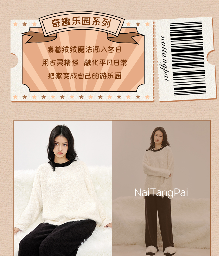 奶糖派奇趣乐园系列小香风圆领套头睡衣休闲慵懒保暖秋冬家居服女