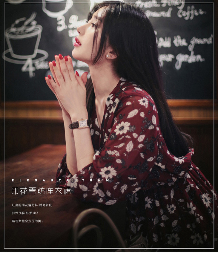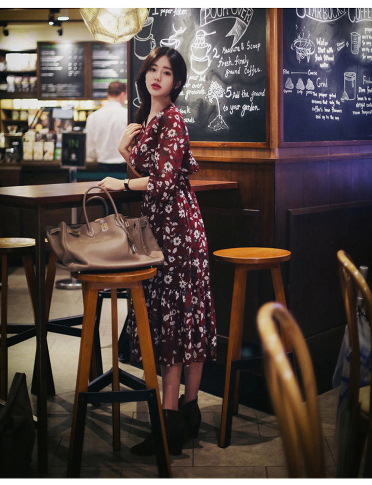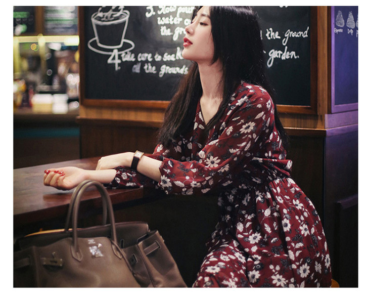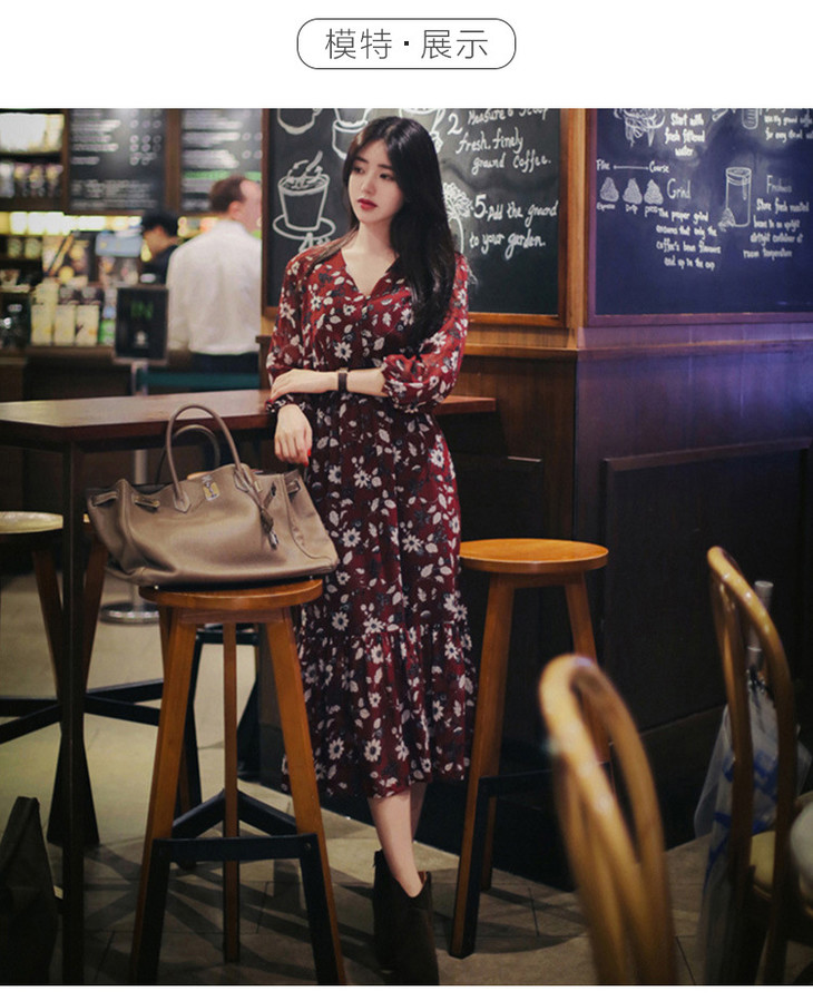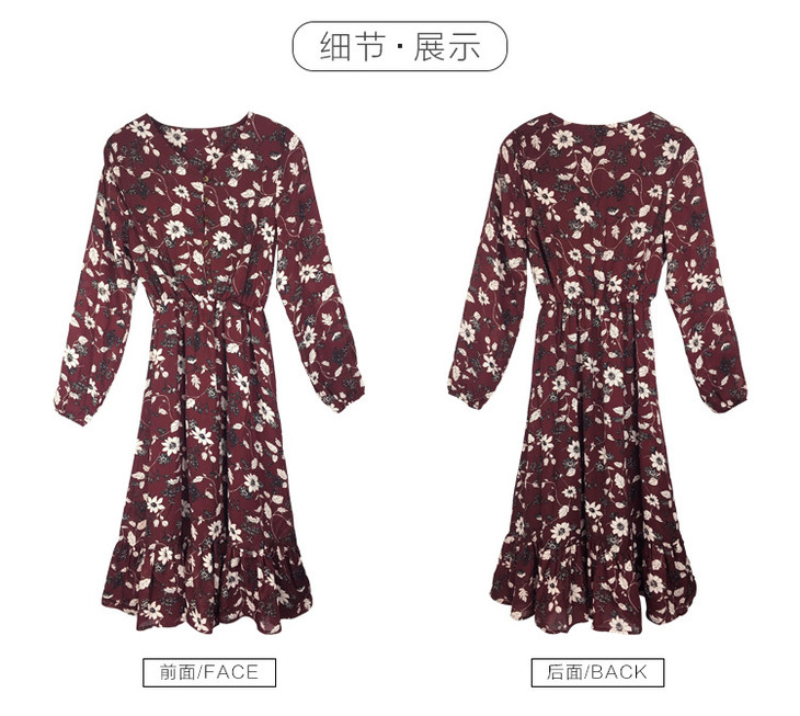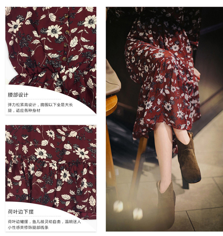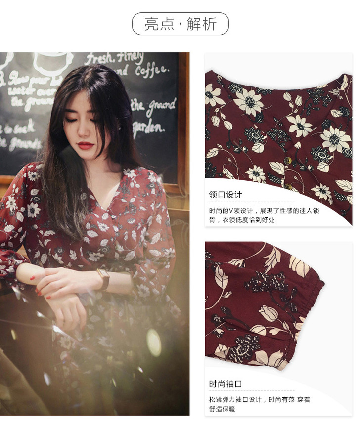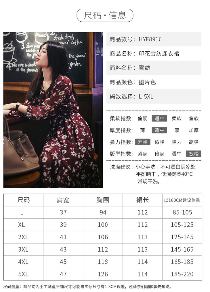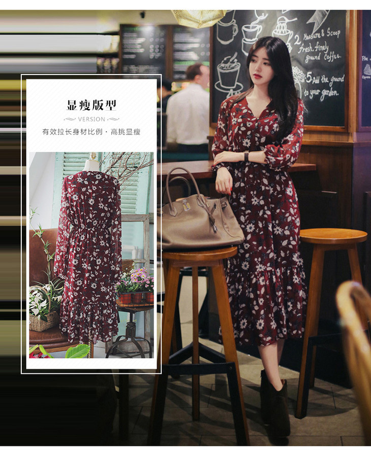 【服饰鞋包】秋装新款加肥加大码碎花雪纺连衣裙女胖妹妹收腰显瘦长裙爆款