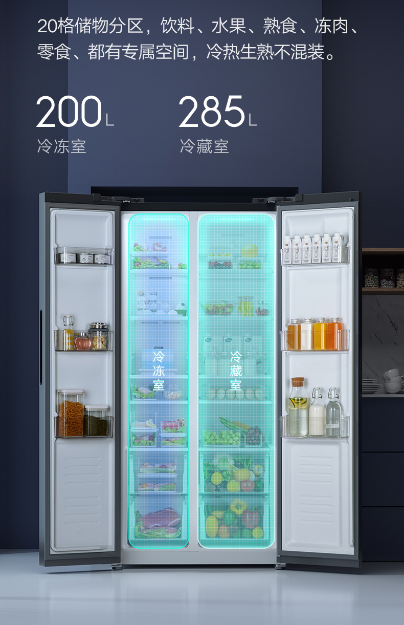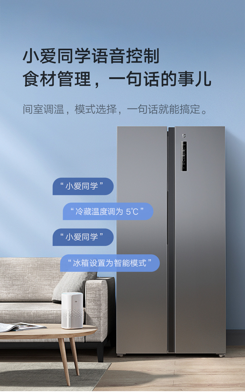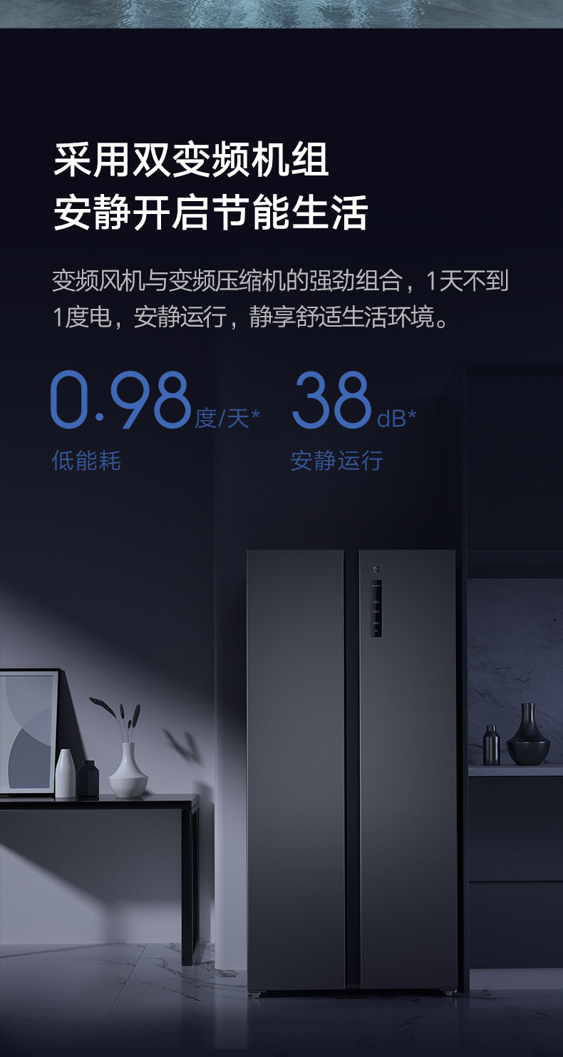 【小米热销】米家小米出品485升风冷无霜变频节能 对开门冰箱大容量家用电冰箱双开门 银离子除菌小爱语音 BCD-485WMSA