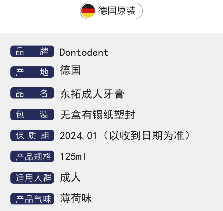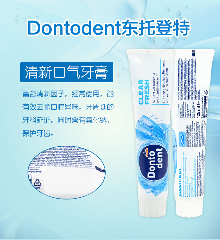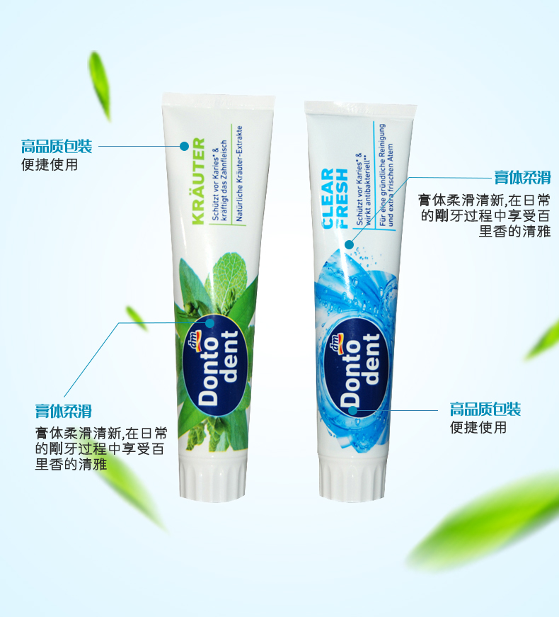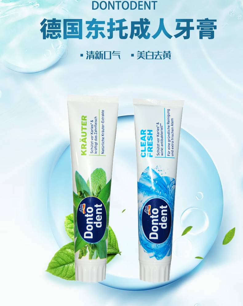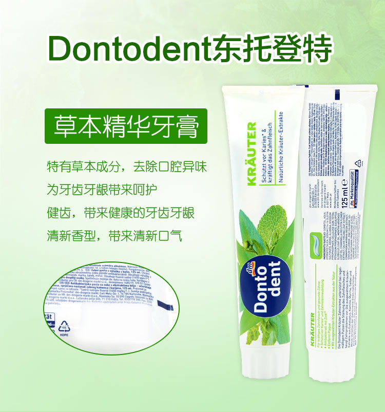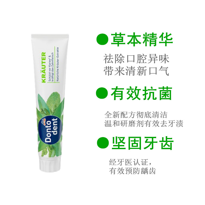 【中欧班列精选4支】德国牙膏 原装进口东托登特/Dontodent 成人牙膏/儿童牙膏 美白去渍/草本成人牙膏儿童薄荷果香牙膏 125ml/100ml