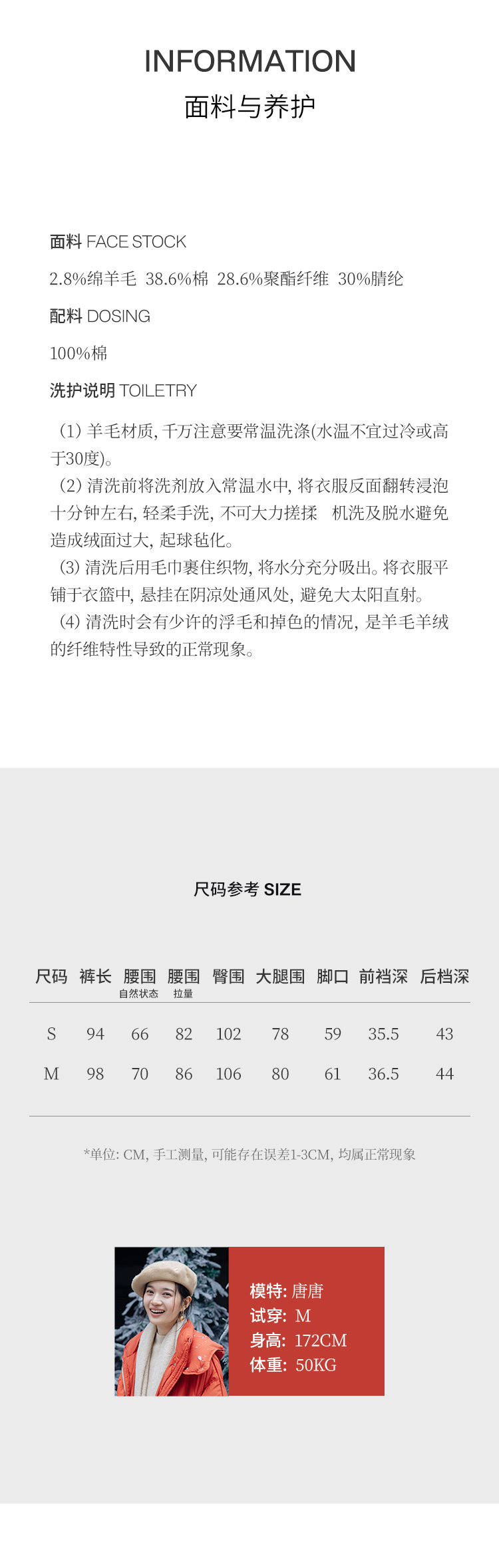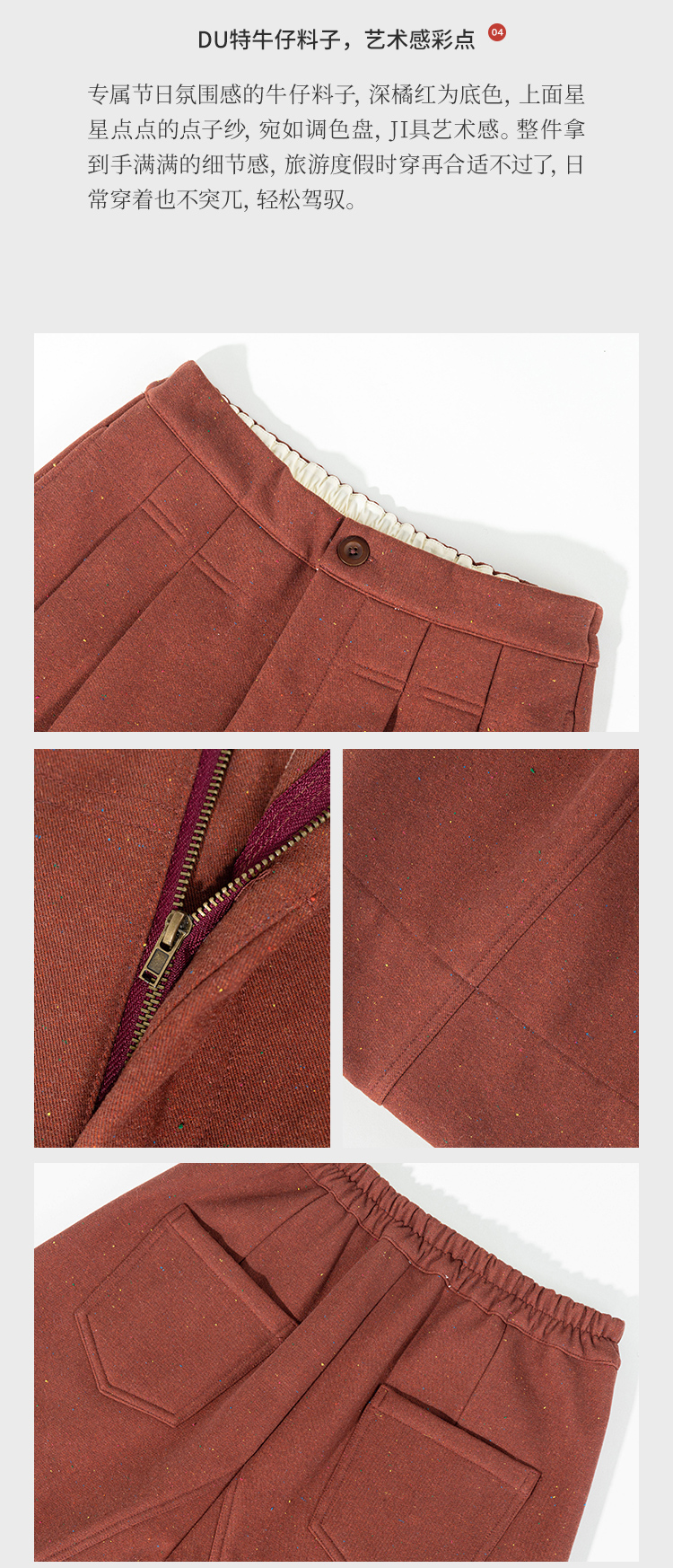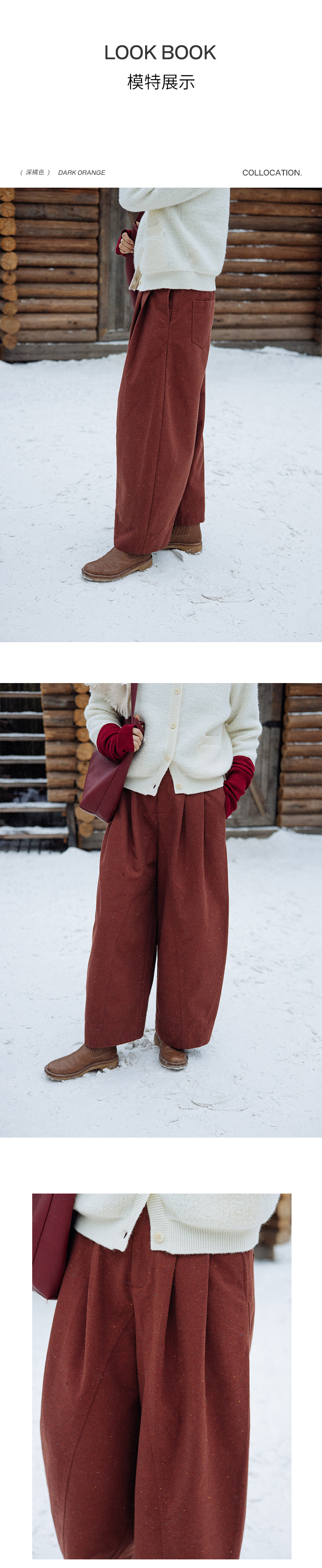 绽放863朵/2024新款牛仔裤棉羊毛混纺彩点加绒斜纹宽松女休闲长裤