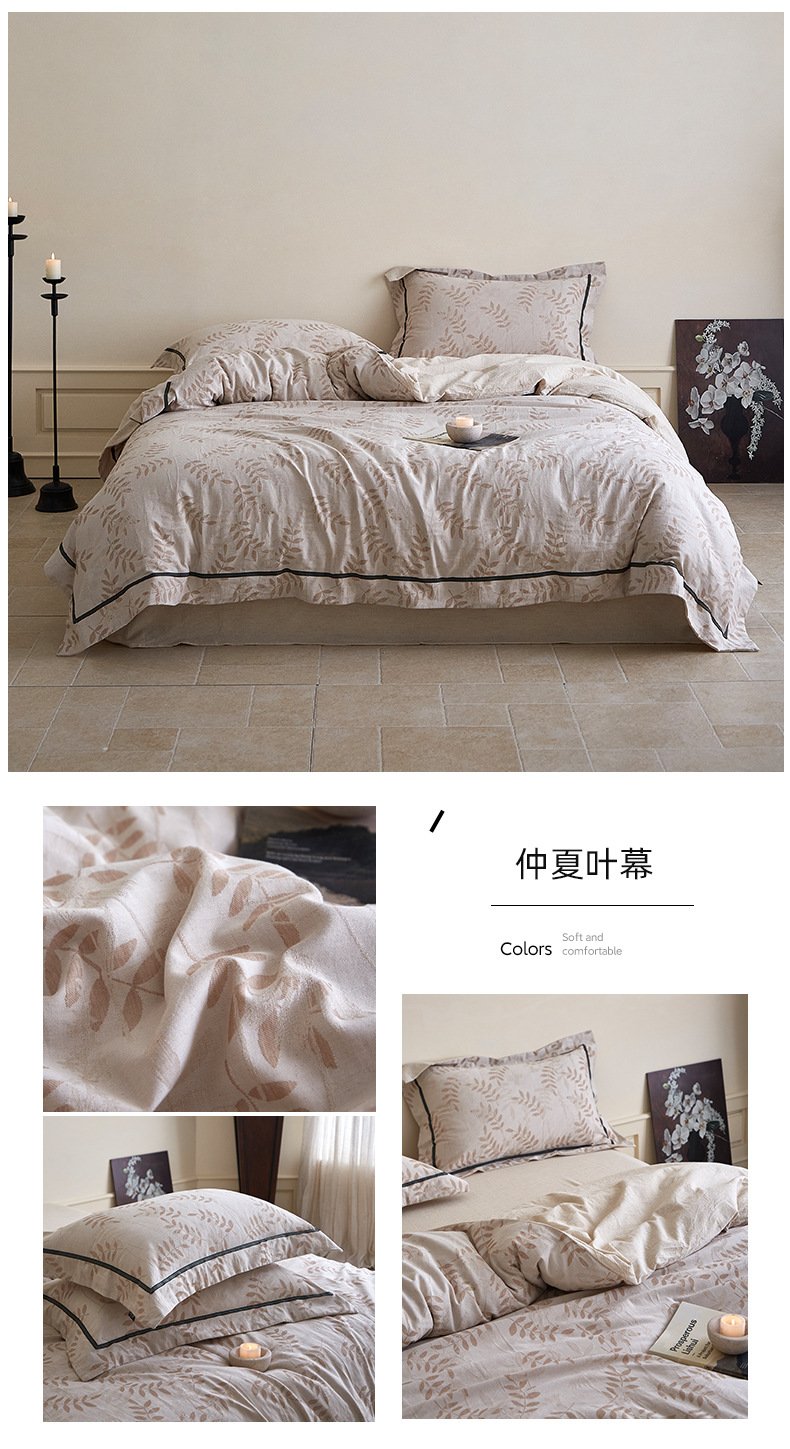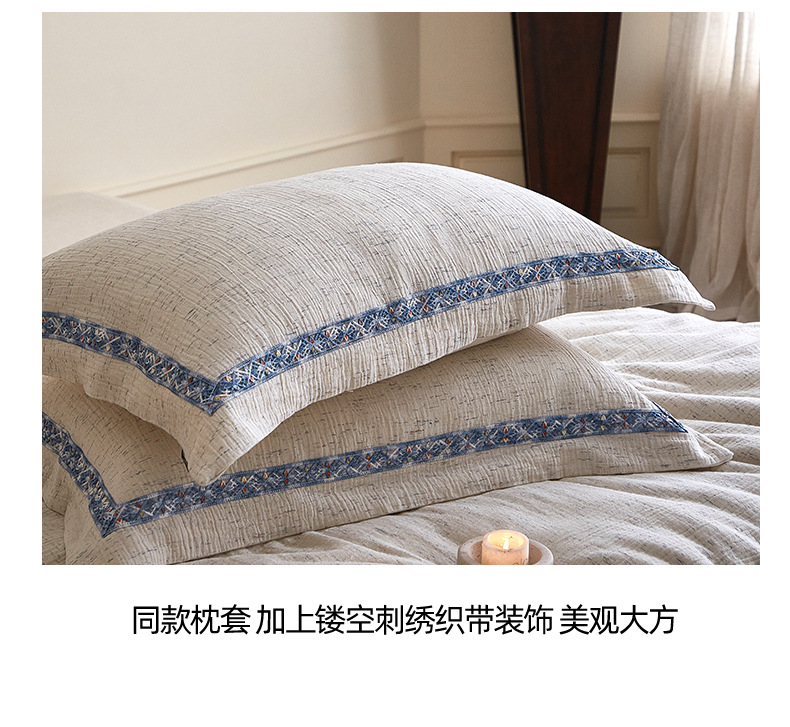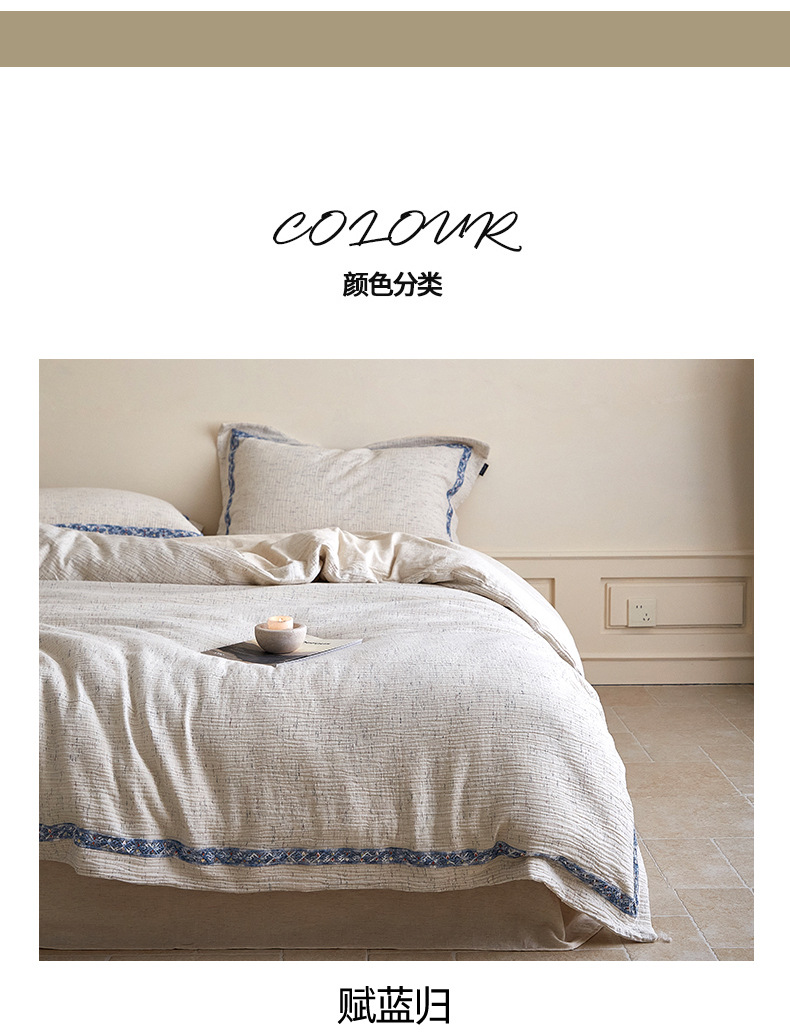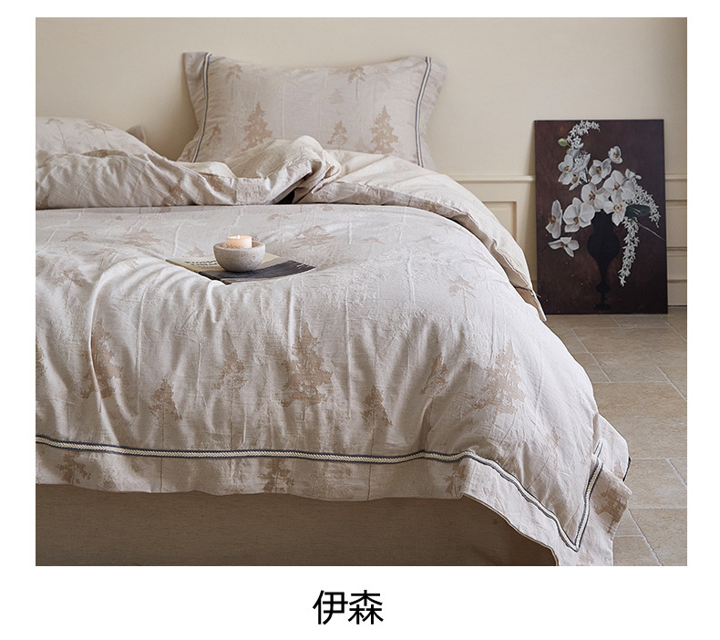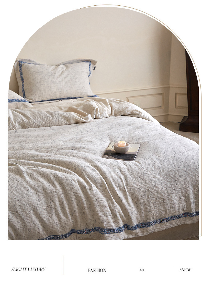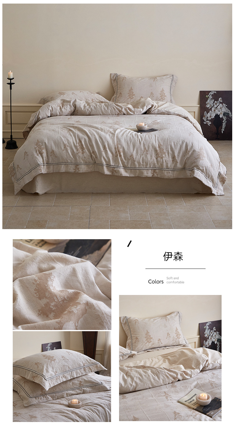 爽肤棉麻~A类棉麻色织提花床单被套四件套20%亚麻床品简约民宿风