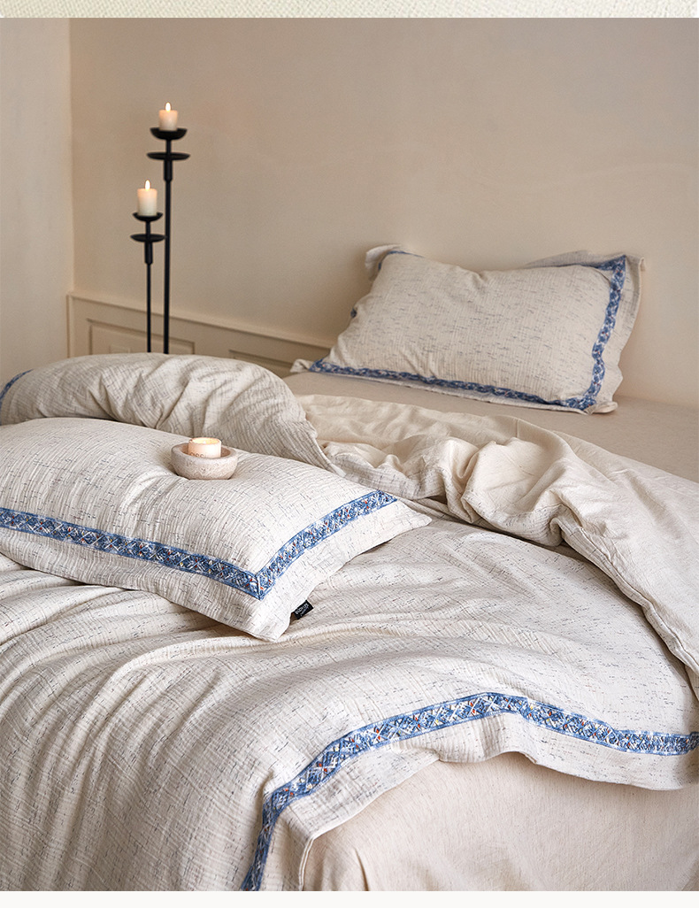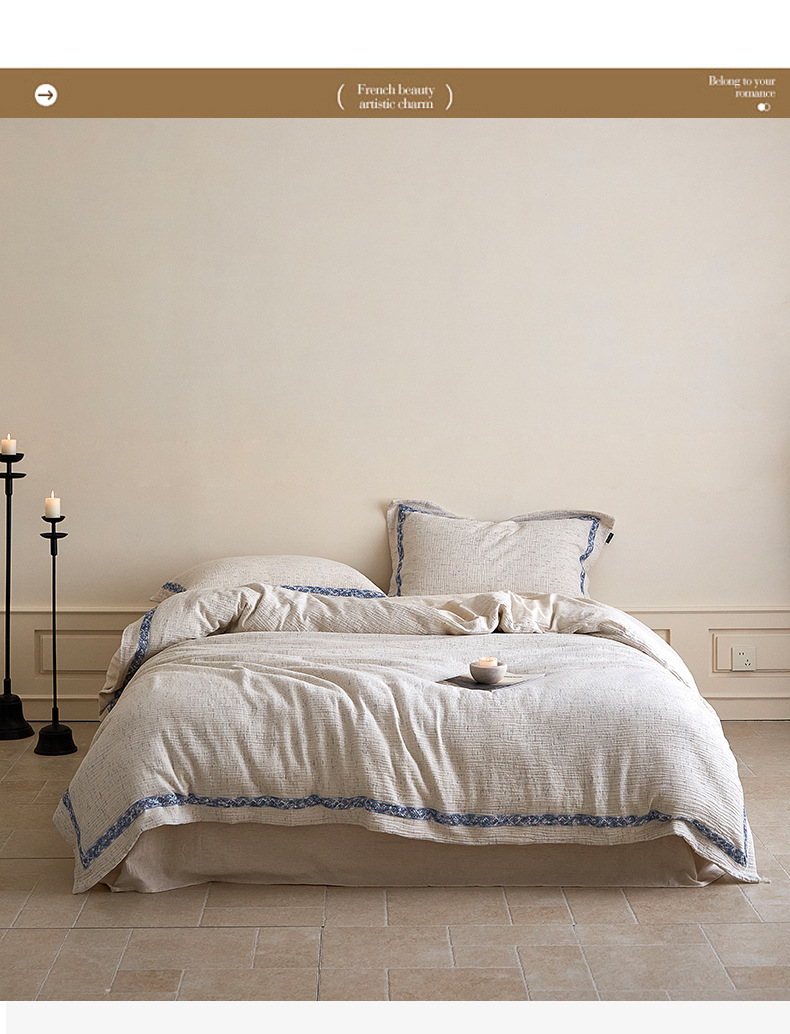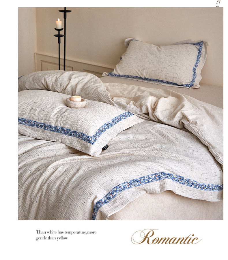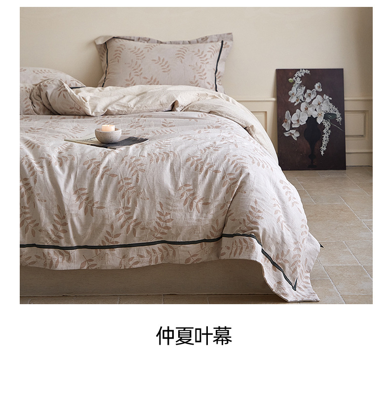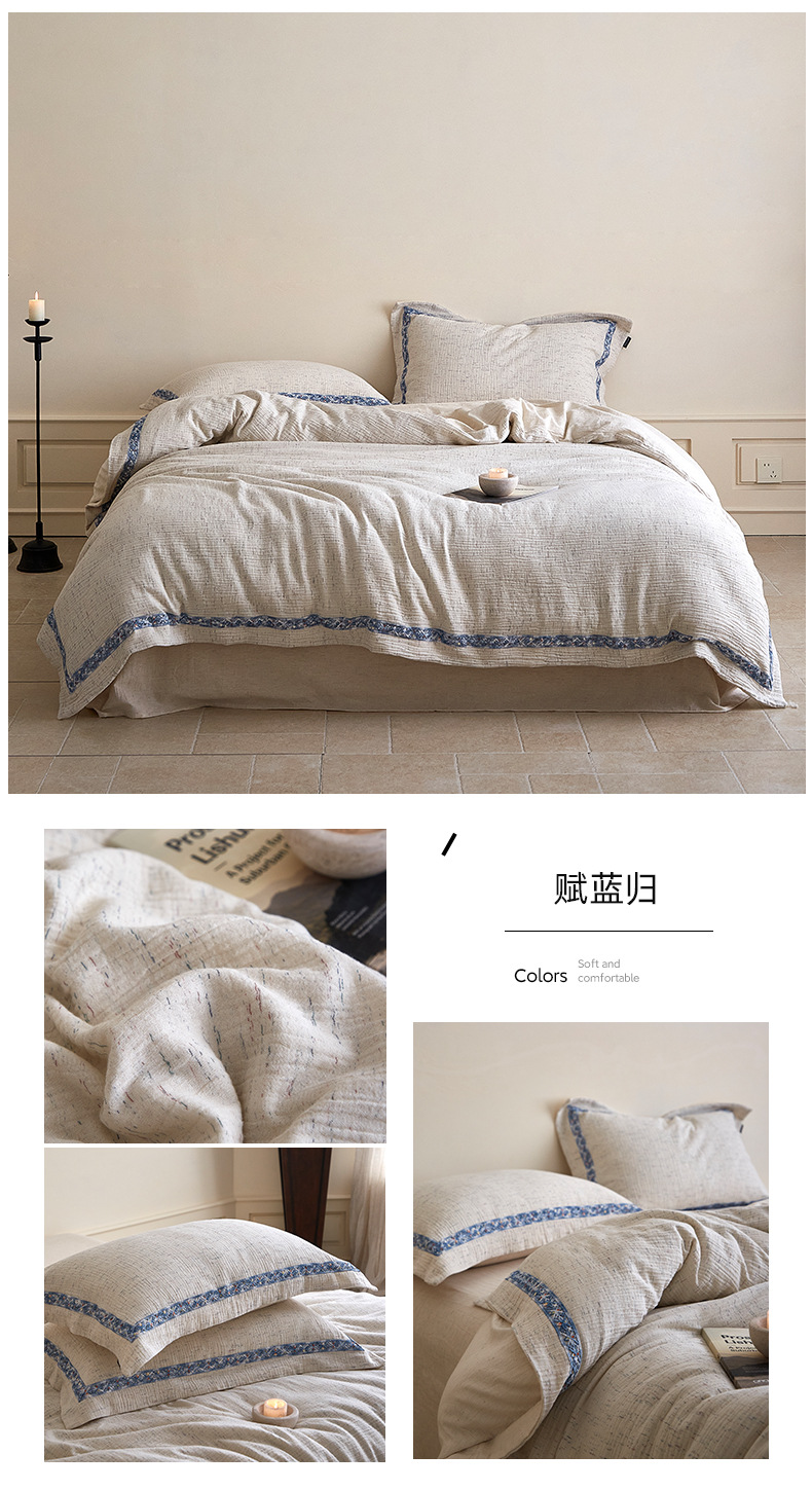 爽肤棉麻~A类棉麻色织提花床单被套四件套20%亚麻床品简约民宿风