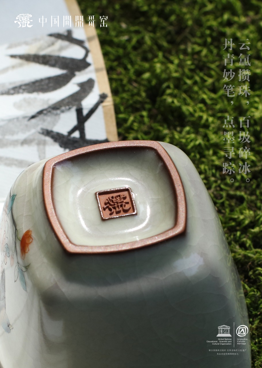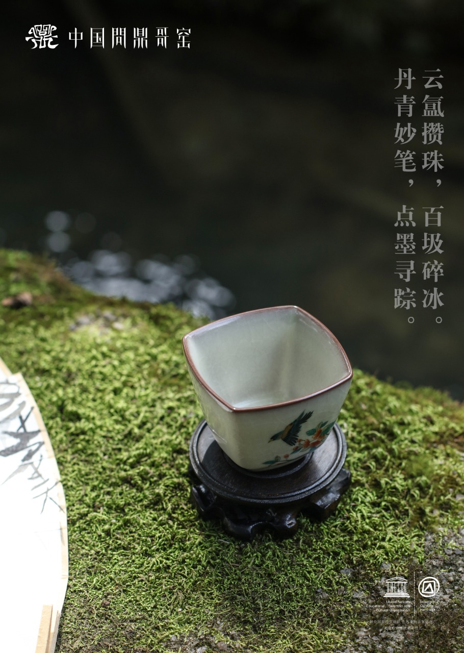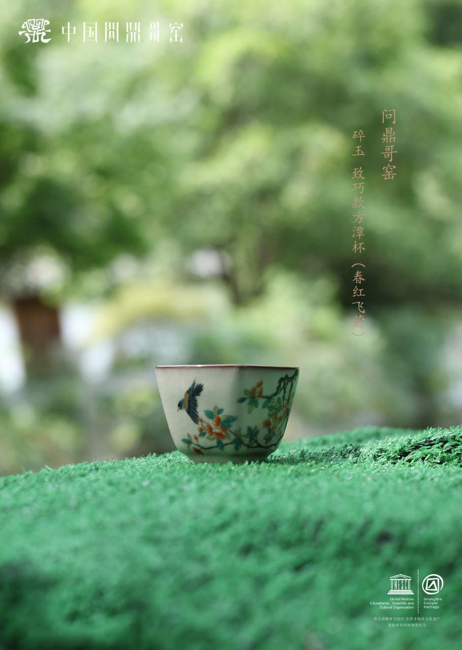 问鼎哥窑致巧款方潭杯(春红飞莺)