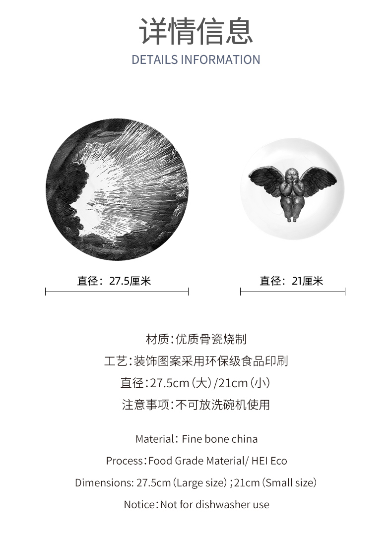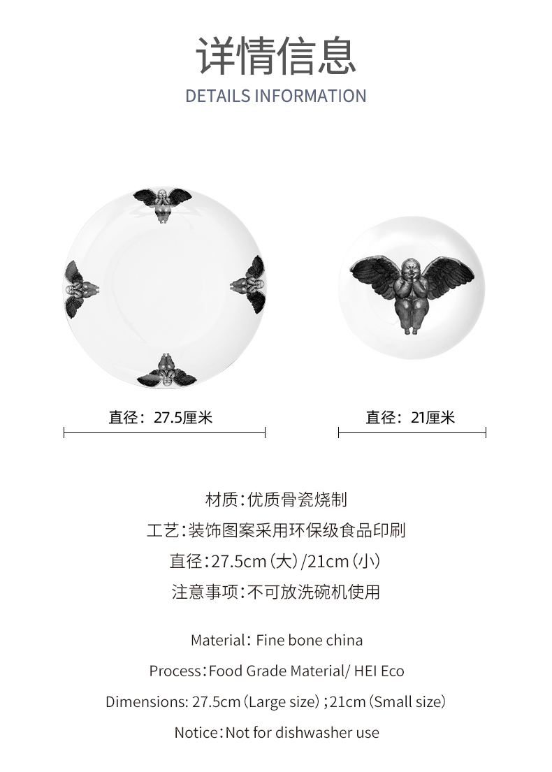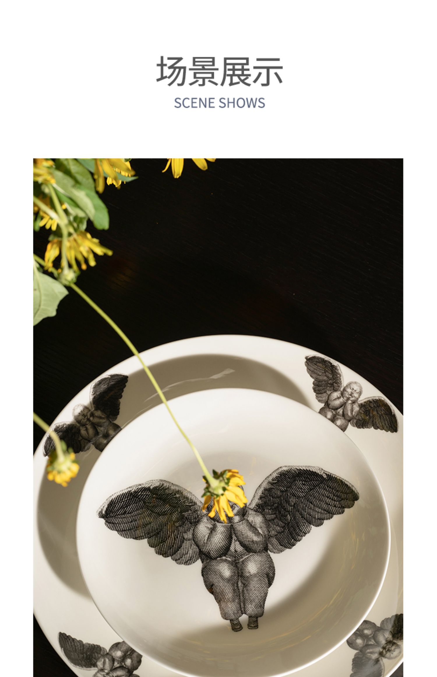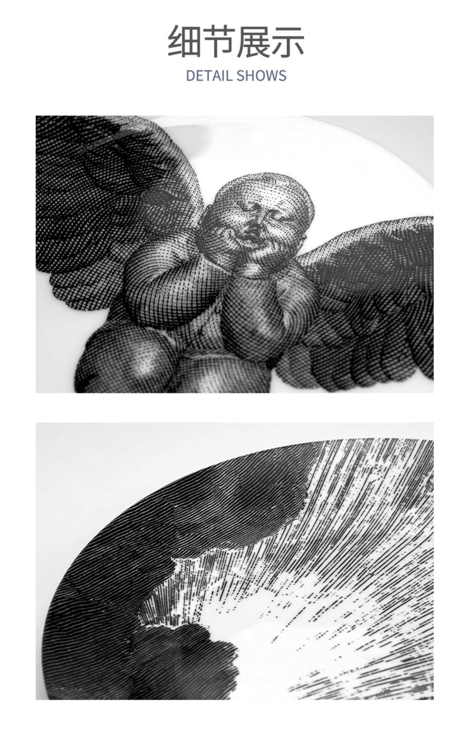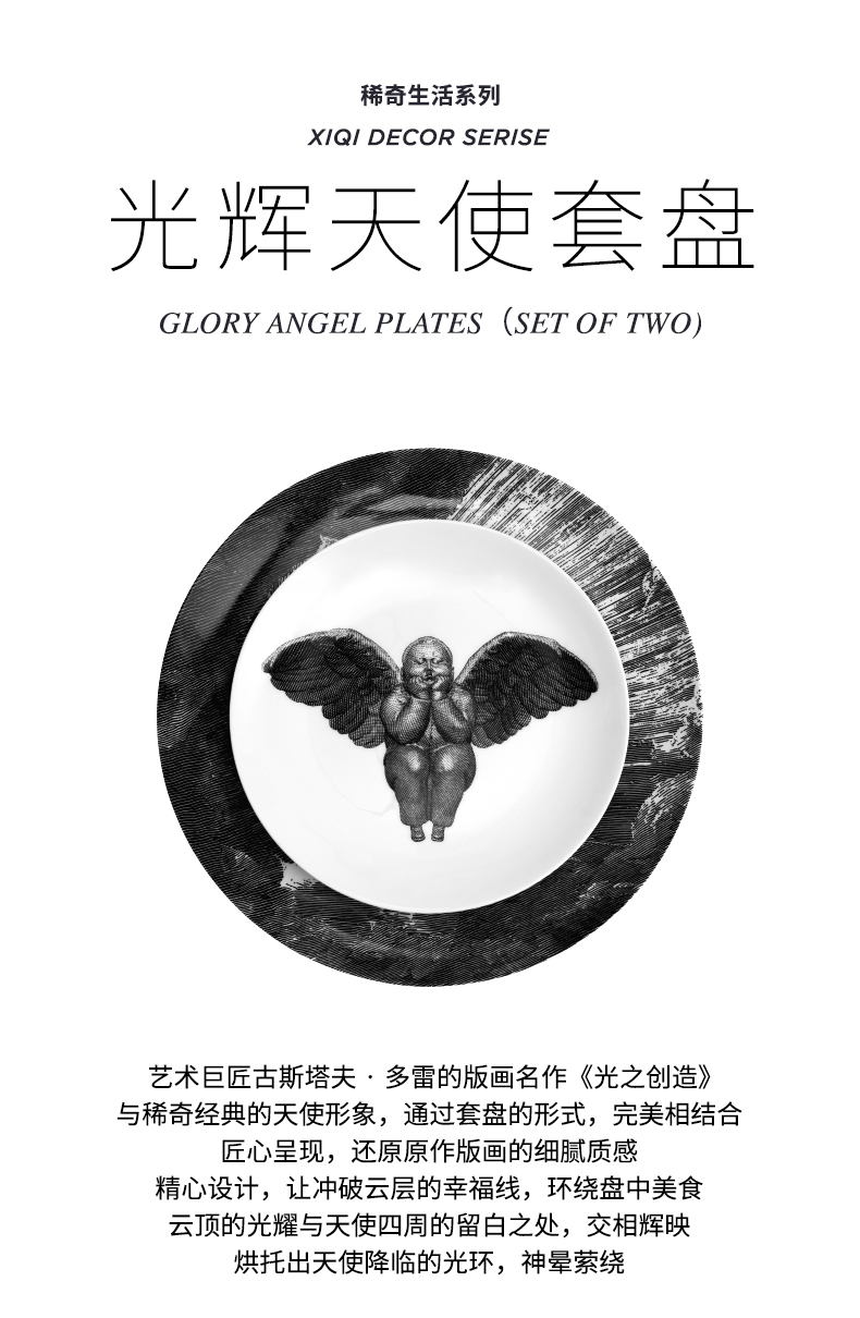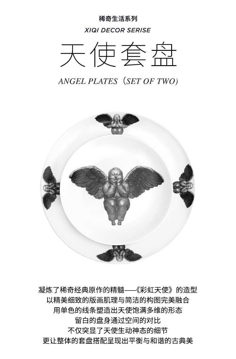 稀奇艺术《光辉天使套盘》餐厅装饰天使骨瓷圆盘两只套装