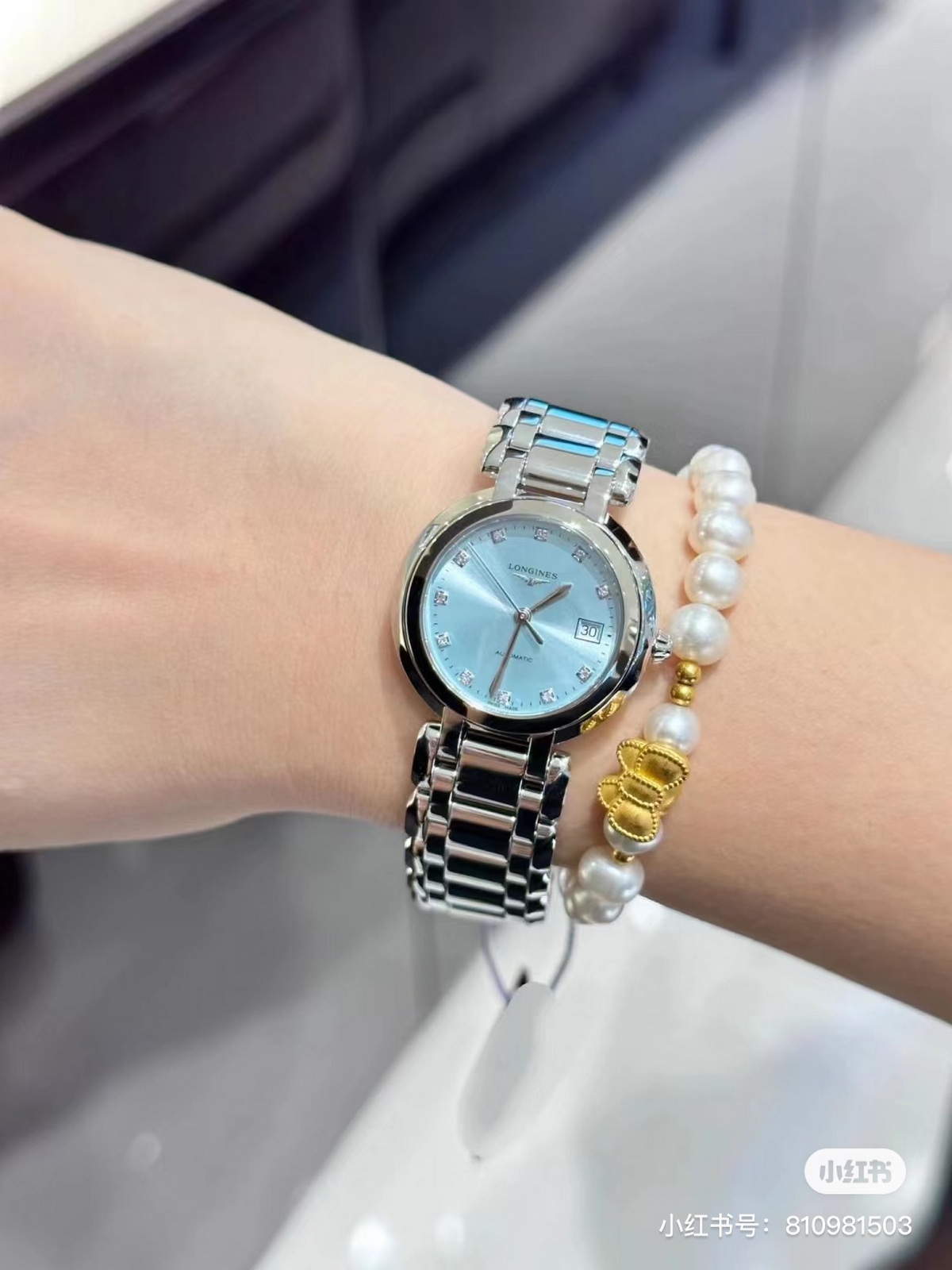 瑞士进口zp石英机芯、361精钢表带,蓝宝石镜面,进口贝母表镜(镶钻款贝母盘)