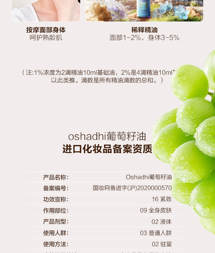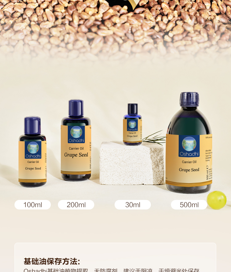 德国O家 葡萄籽油 紧致肌肤 身体按摩油基底油基础油 稀释精油