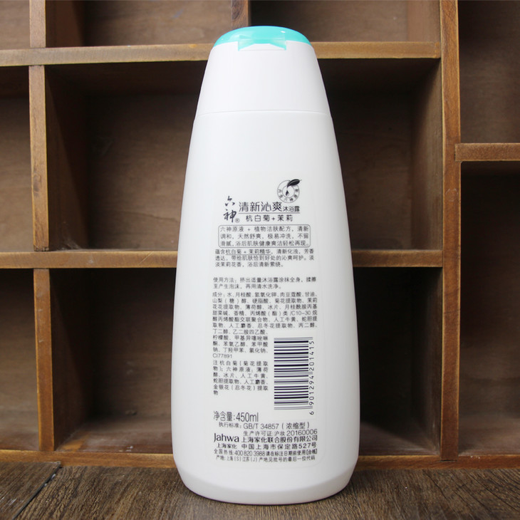 六神450ml清新沁爽沐浴露杭白菊+茉莉清爽型天然植物活肤配方男女通用