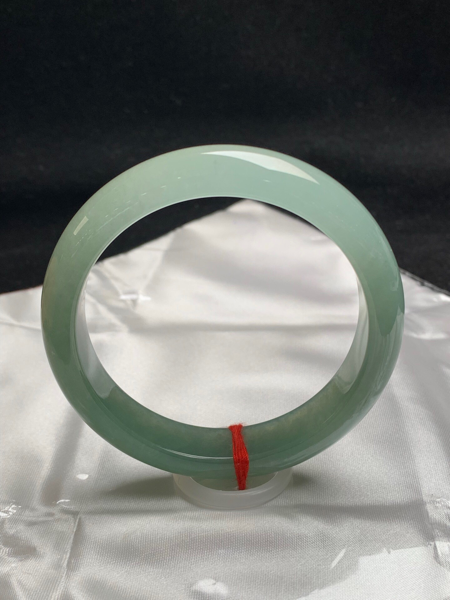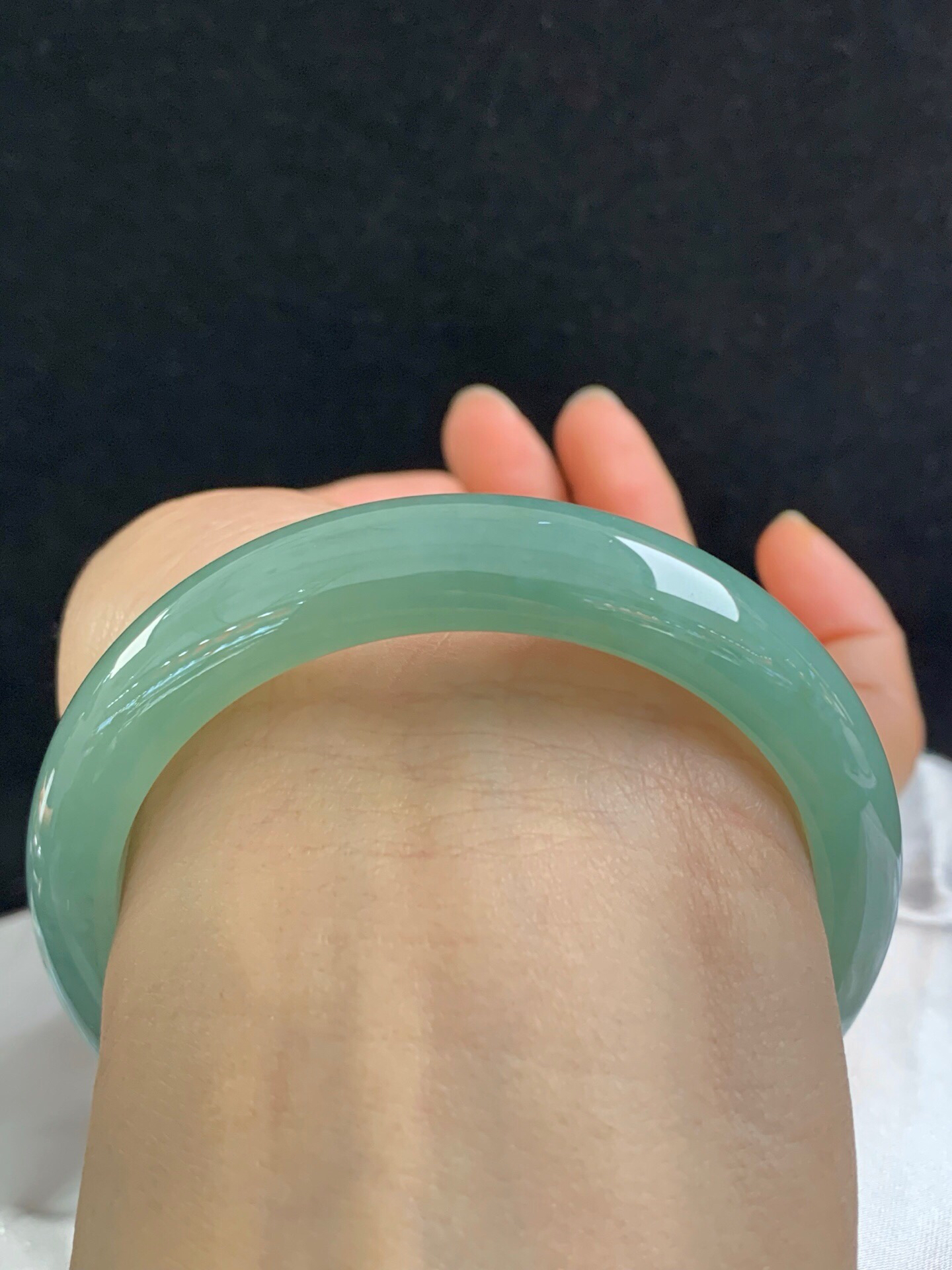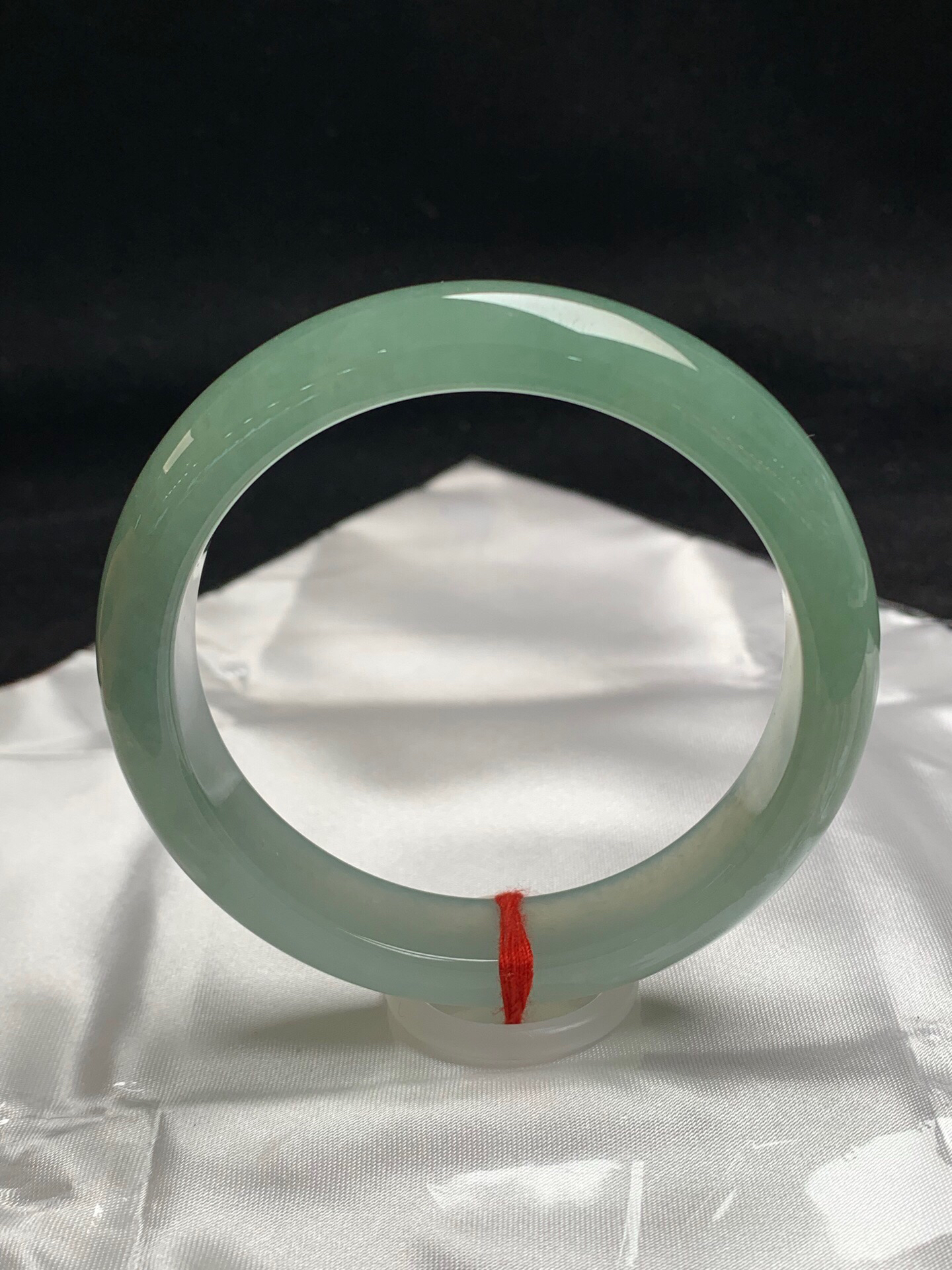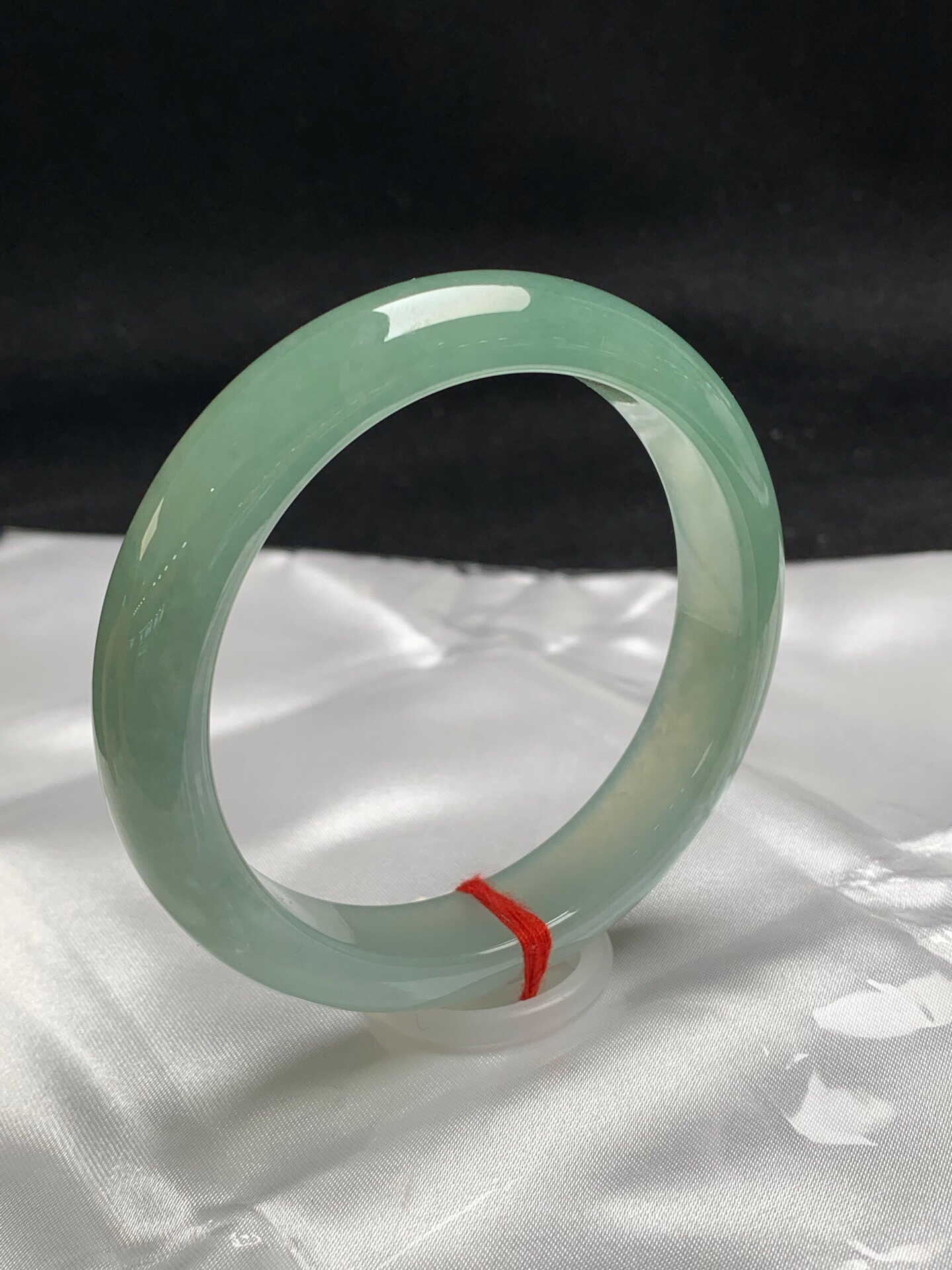 612638,57.3圈口,冰油青正圈平安镯,半山半水色,淡雅湖水绿,冰透有光感,完美无裂,尺寸:57.3-12.8-7.8,超值价💰45000 #优石客珠宝#香玉荟萃