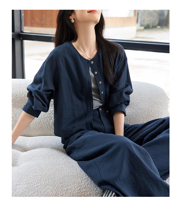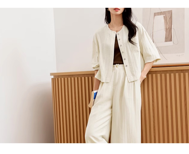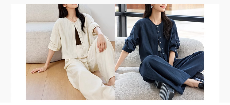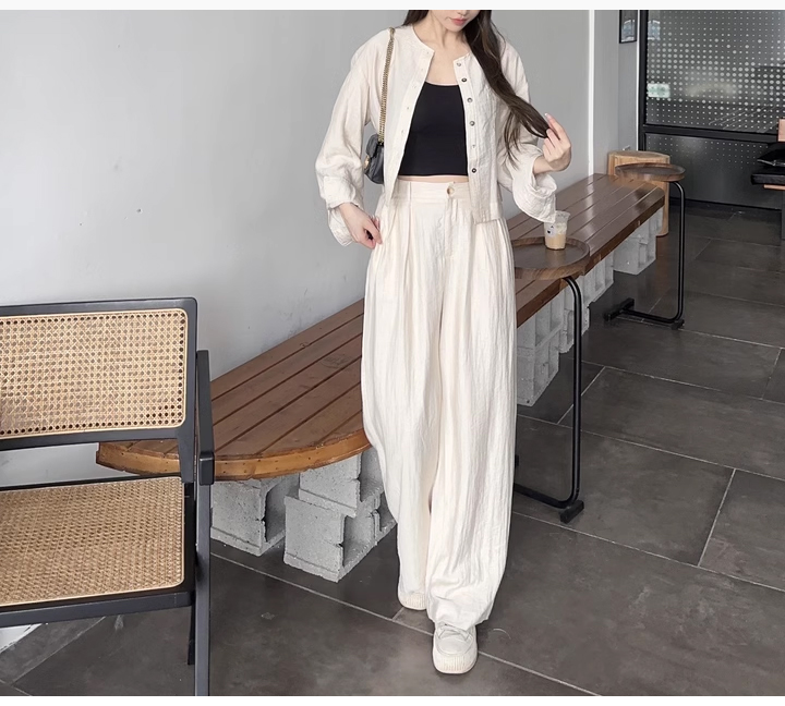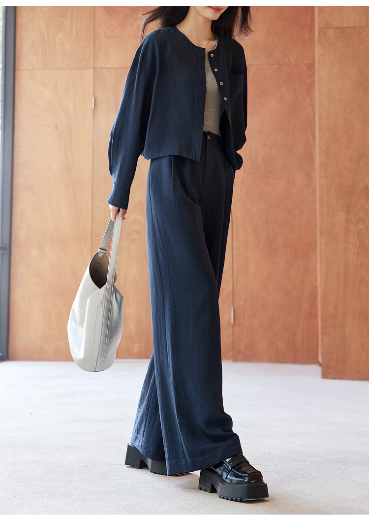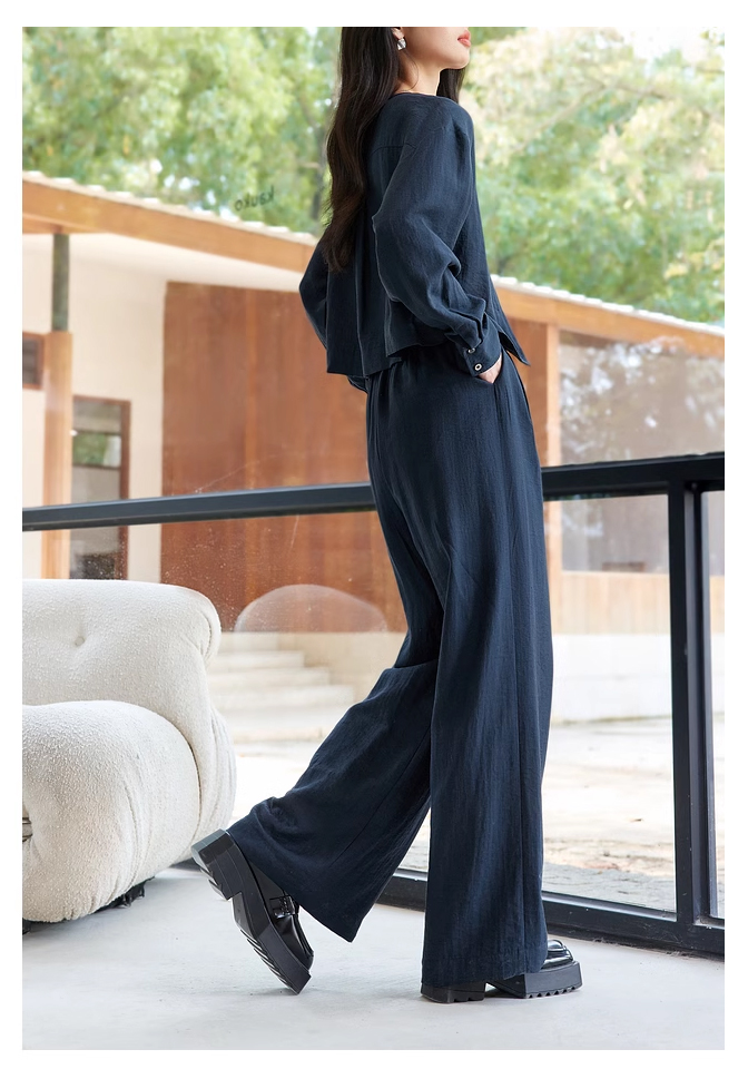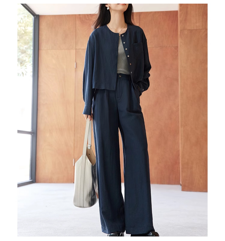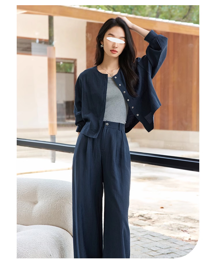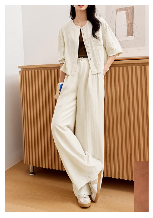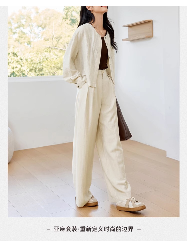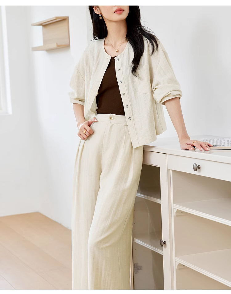 裁缝学苑AQ374亚麻通勤圆领衬衫纸样阔腿裤子女装新款套装样板
