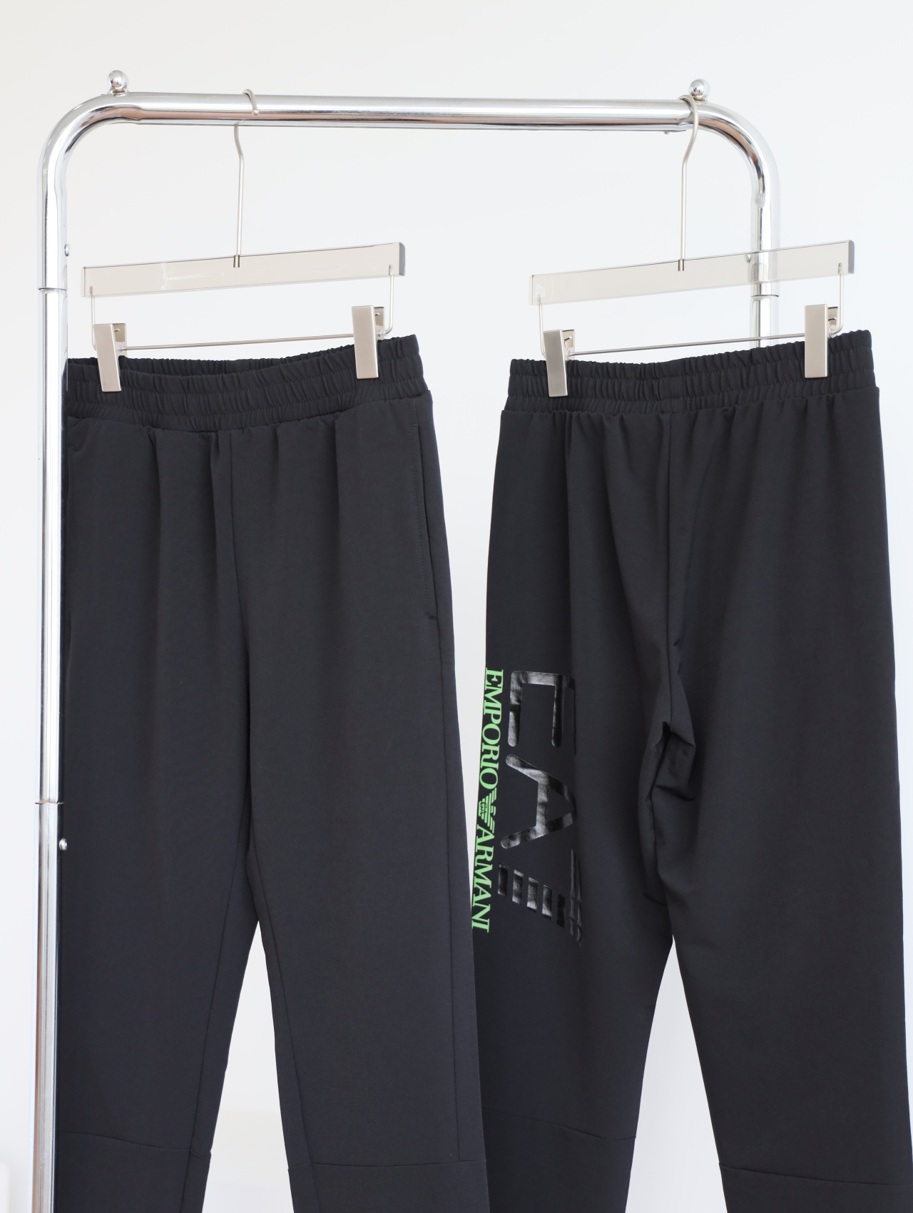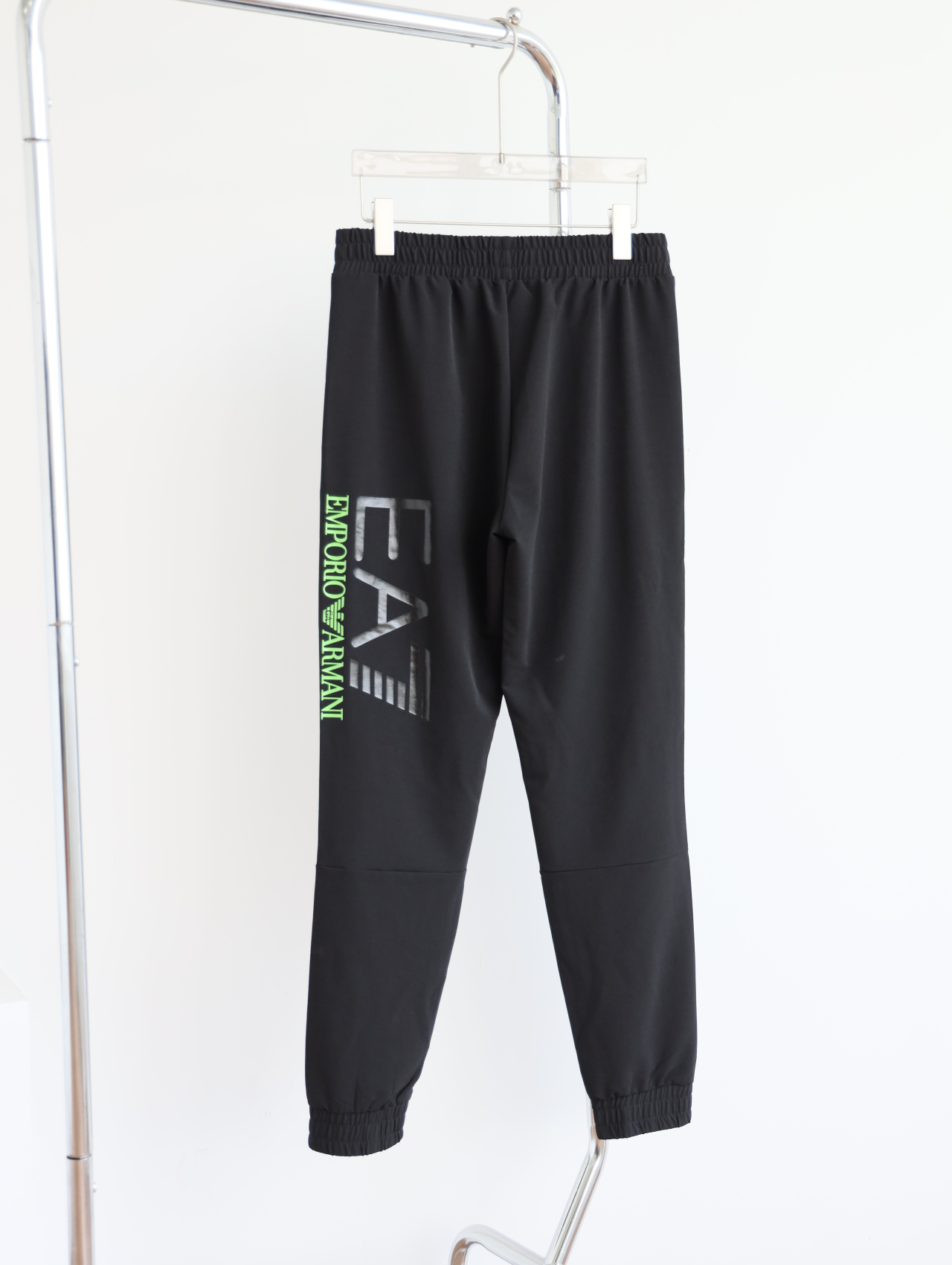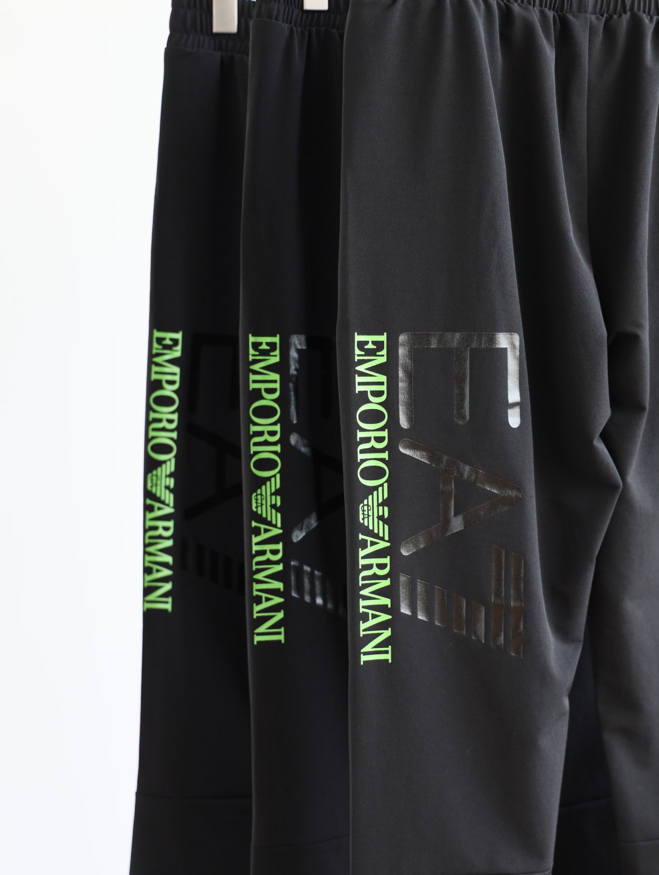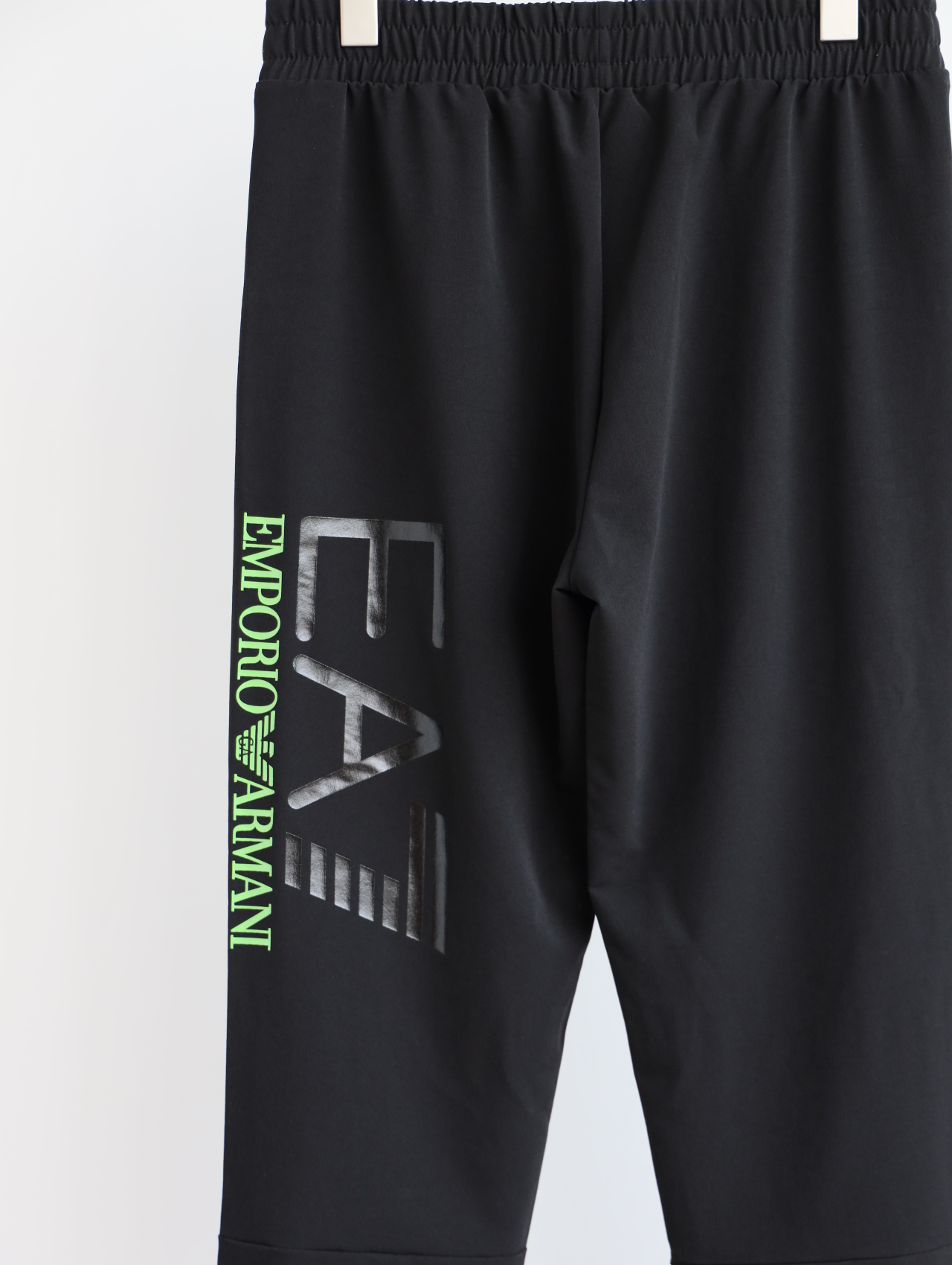 侧边E7绿标+黑标印花一直延伸到大腿后侧,错落有致。