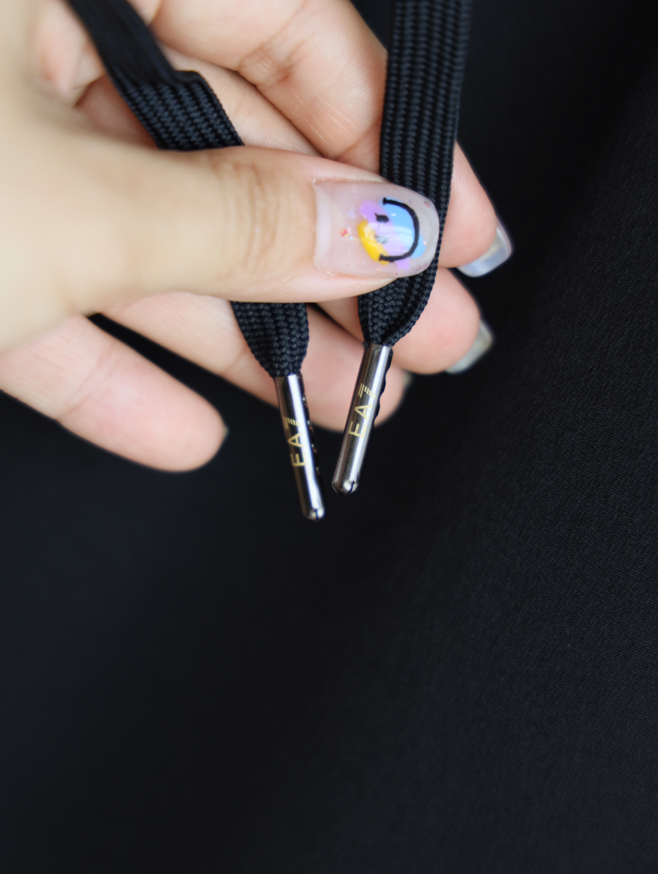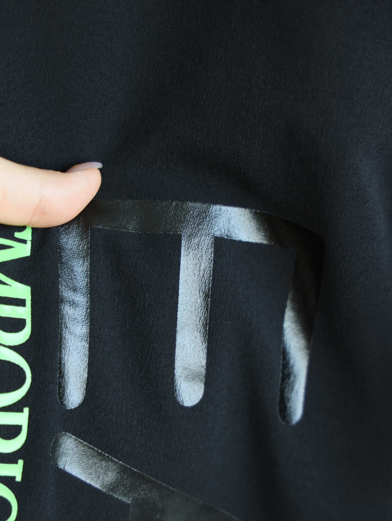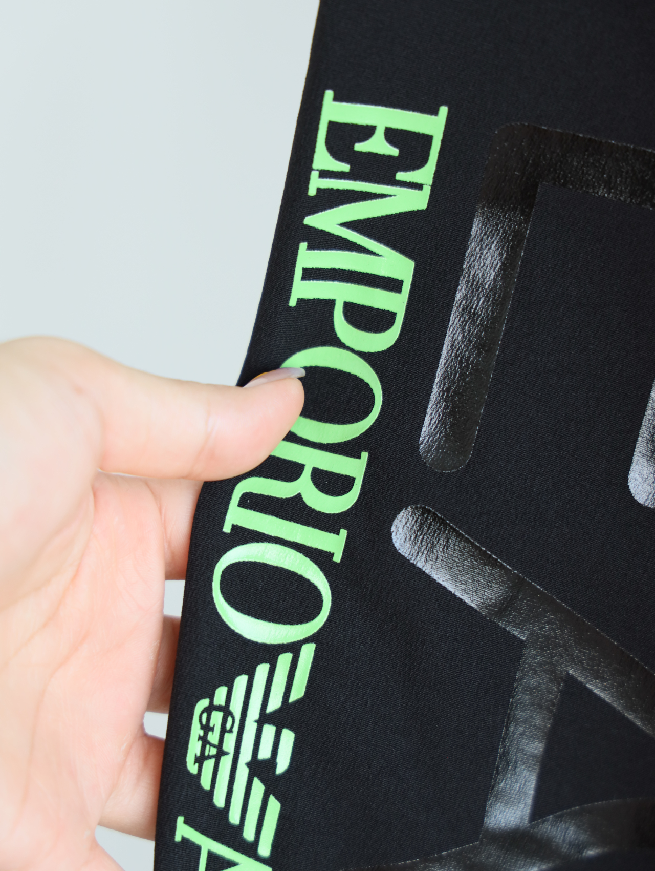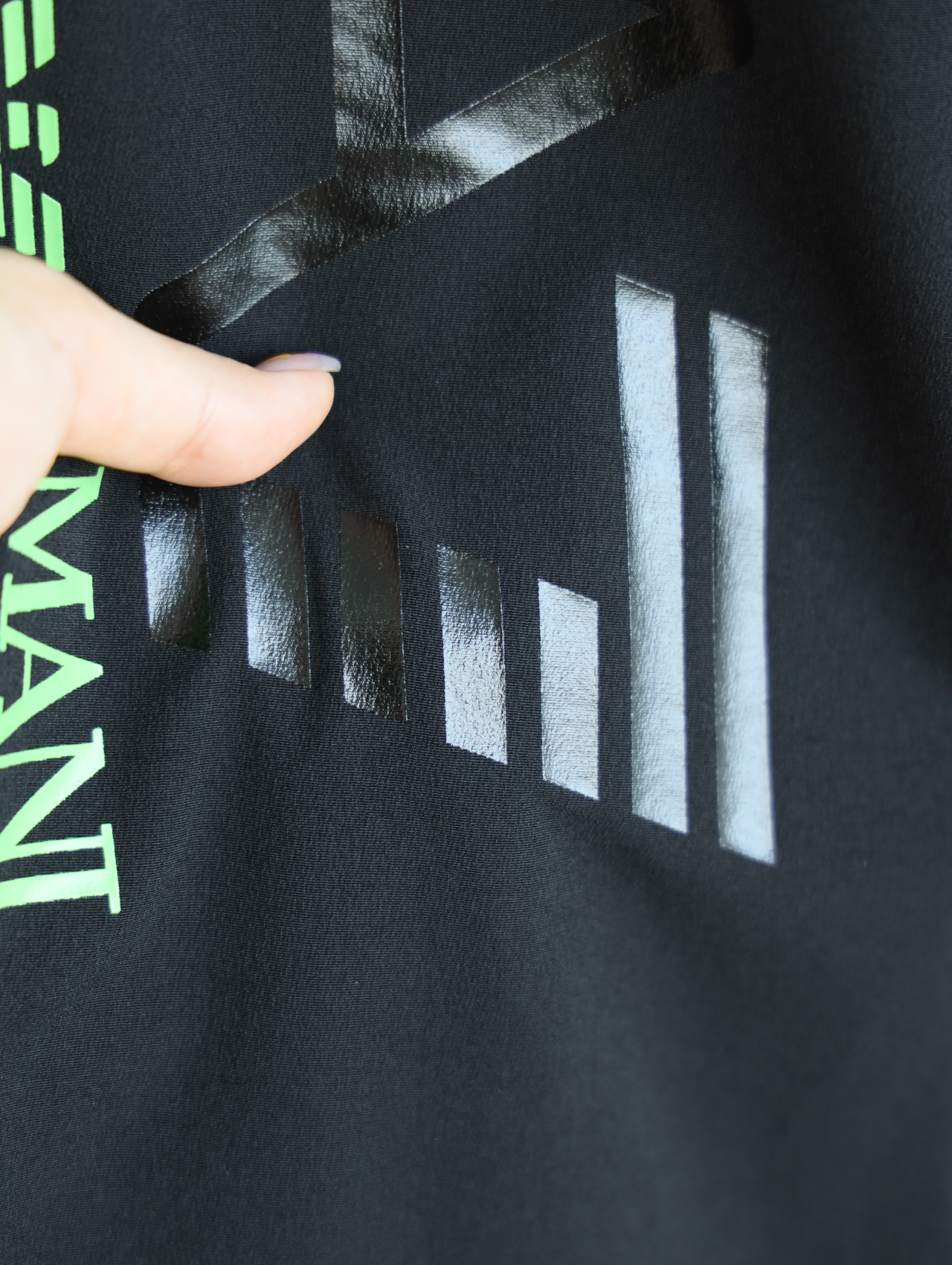 侧边E7绿标+黑标印花一直延伸到大腿后侧,错落有致。