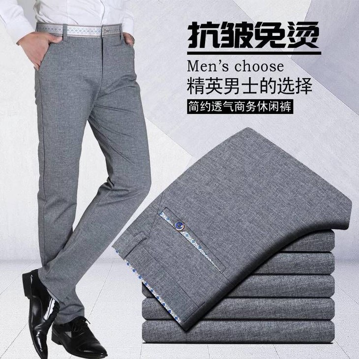 【服饰鞋包】夏季薄款男士直筒休闲裤高弹力商务男裤修身长裤子男免烫英伦西裤