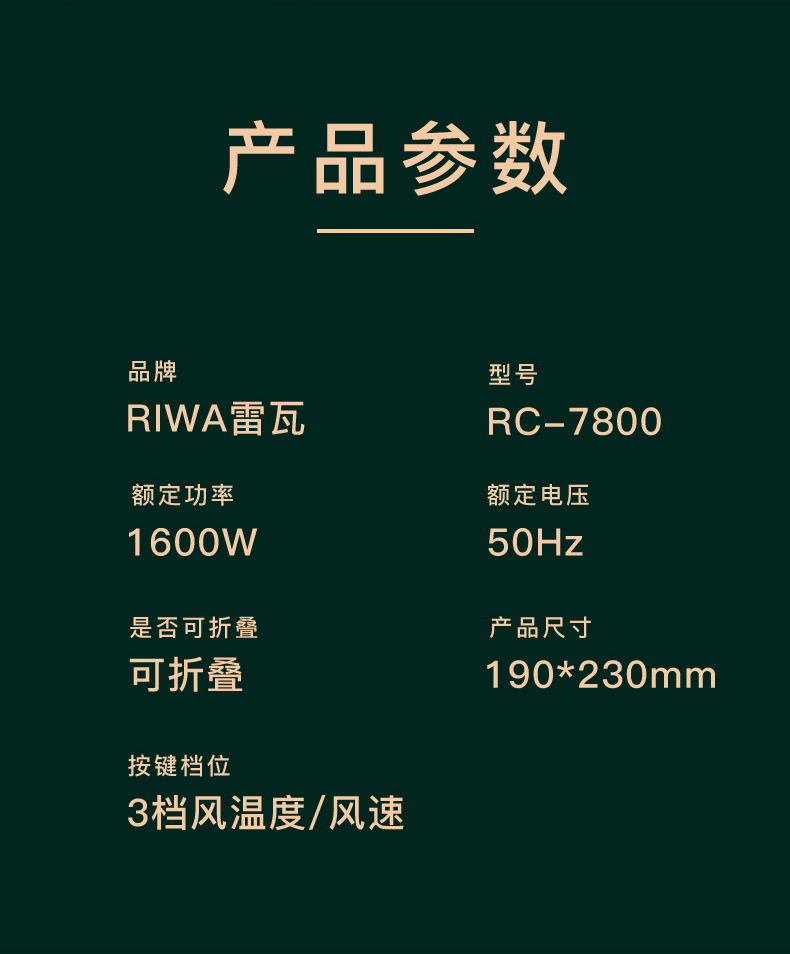 雷瓦负离子可折叠电吹风RC-7800【CZ】